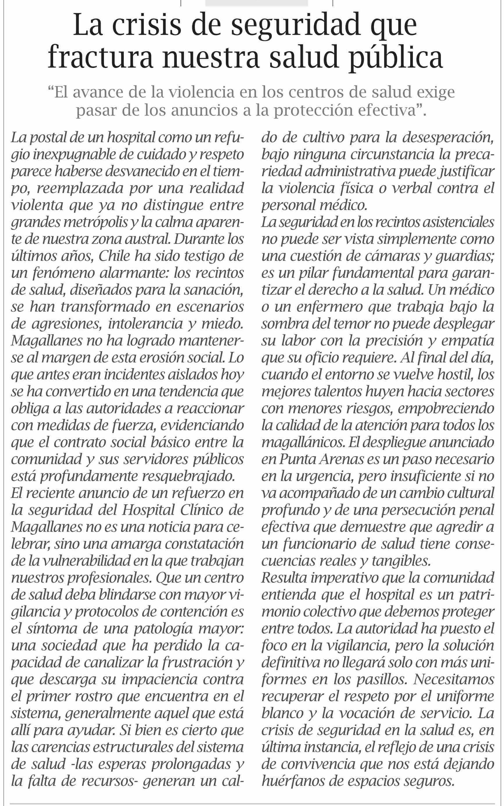 Editorial: La crisis de seguridad que fractura nuestra salud pública 15-04-2026 El Pingüino |