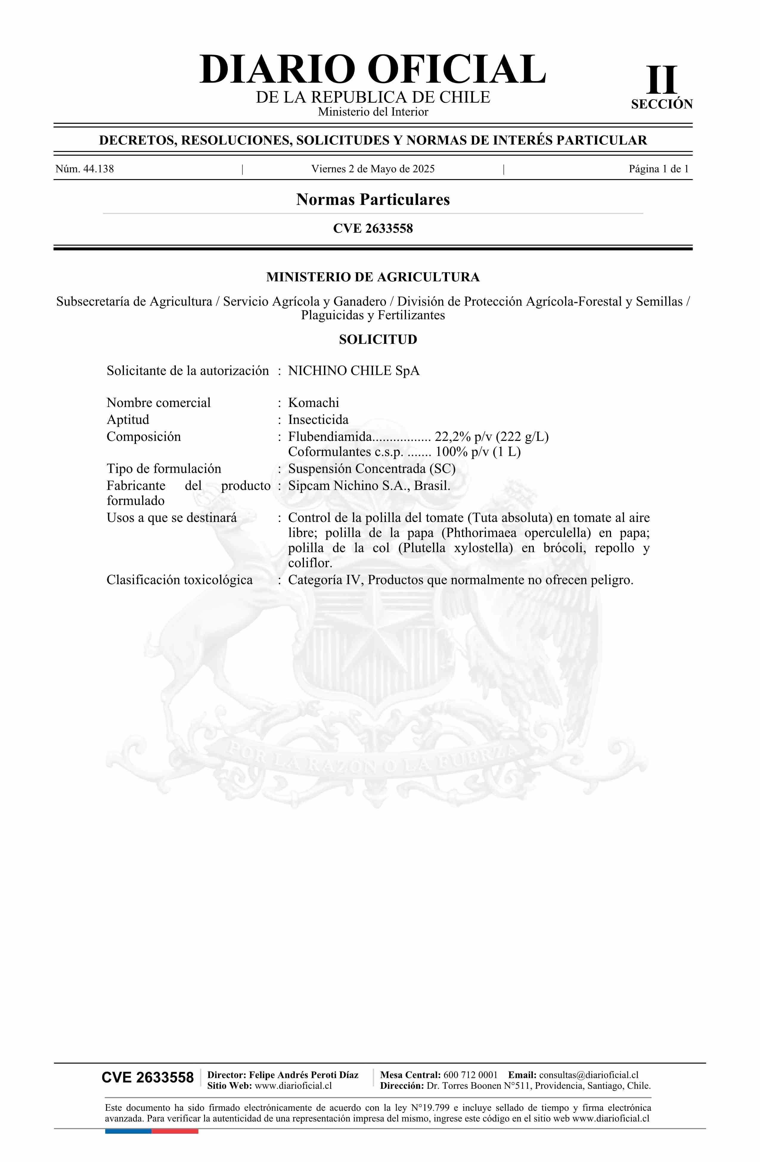 Solicitud Nichino Chile SpA 02-05-2025 Diario Oficial Edición Electrónica |