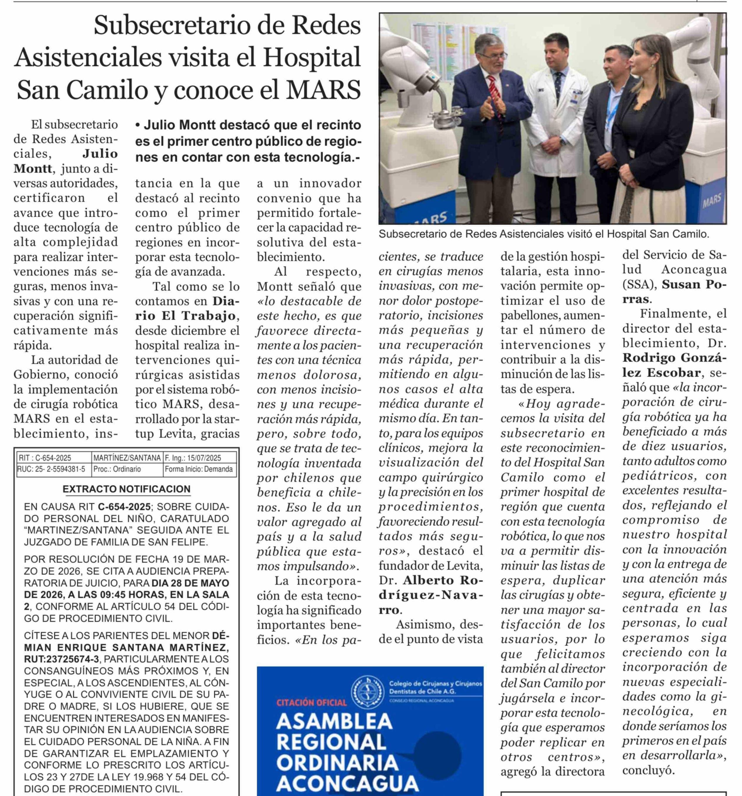 Título: Subsecretario de Redes Asistenciales visita el Hospital San Camilo y conoce el MARS