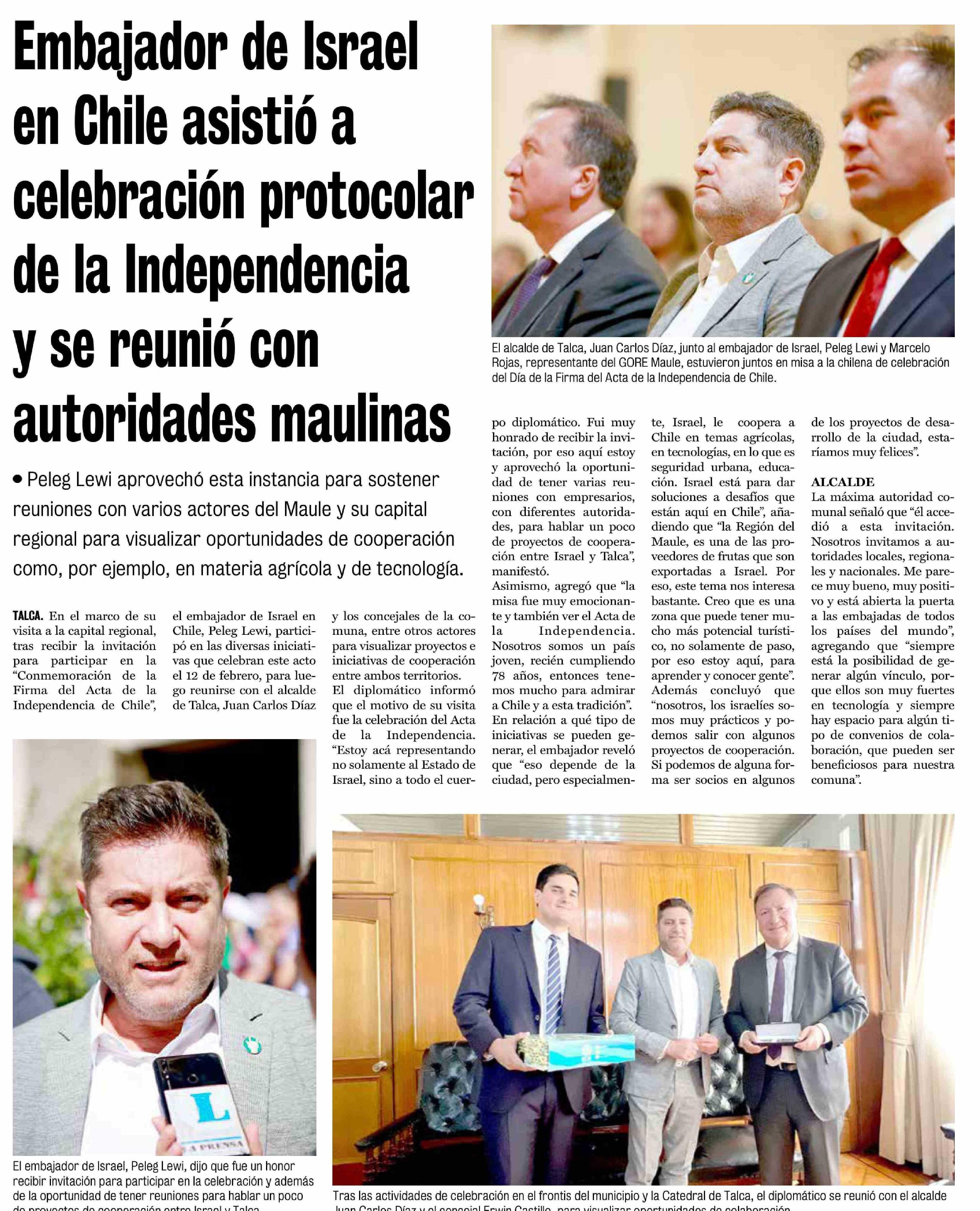 Título: Embajador de Israel en Chile asistió a celebración protocolar de la Independencia y se reunió con autoridades maulinas
