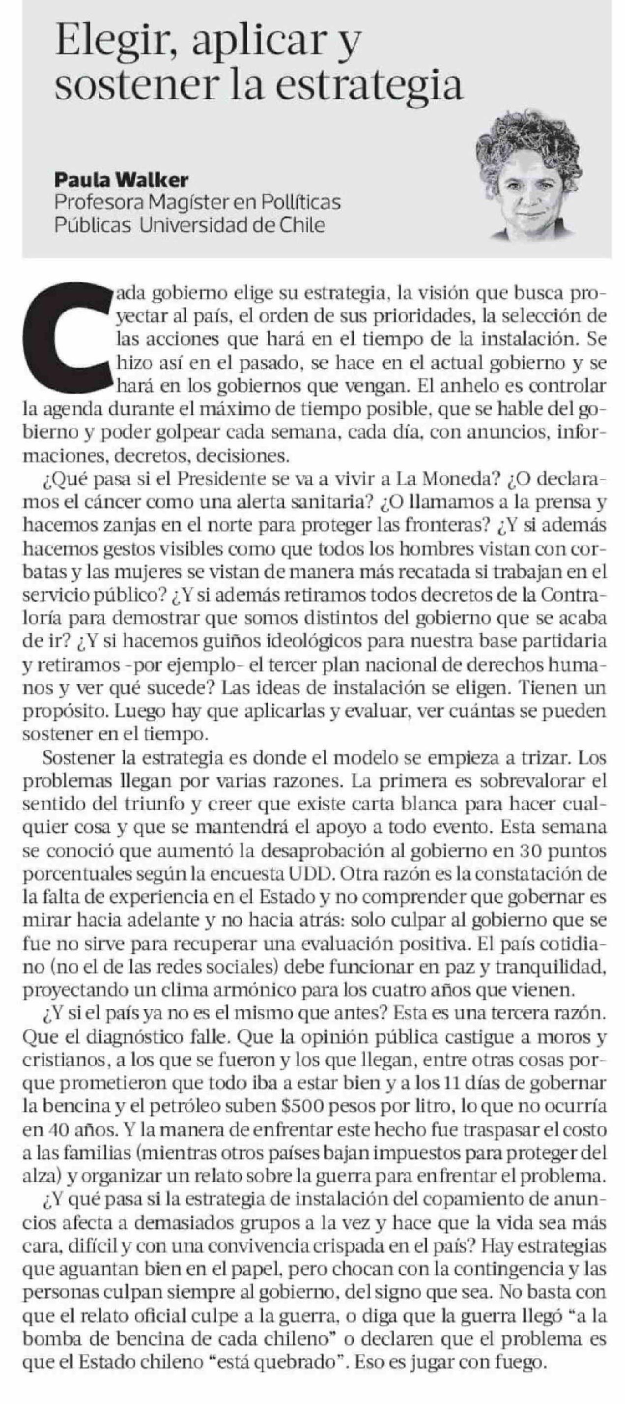 Columnas de Opinión: Elegir, aplicar y sostener la estrategia 26-03-2026 La Tercera |