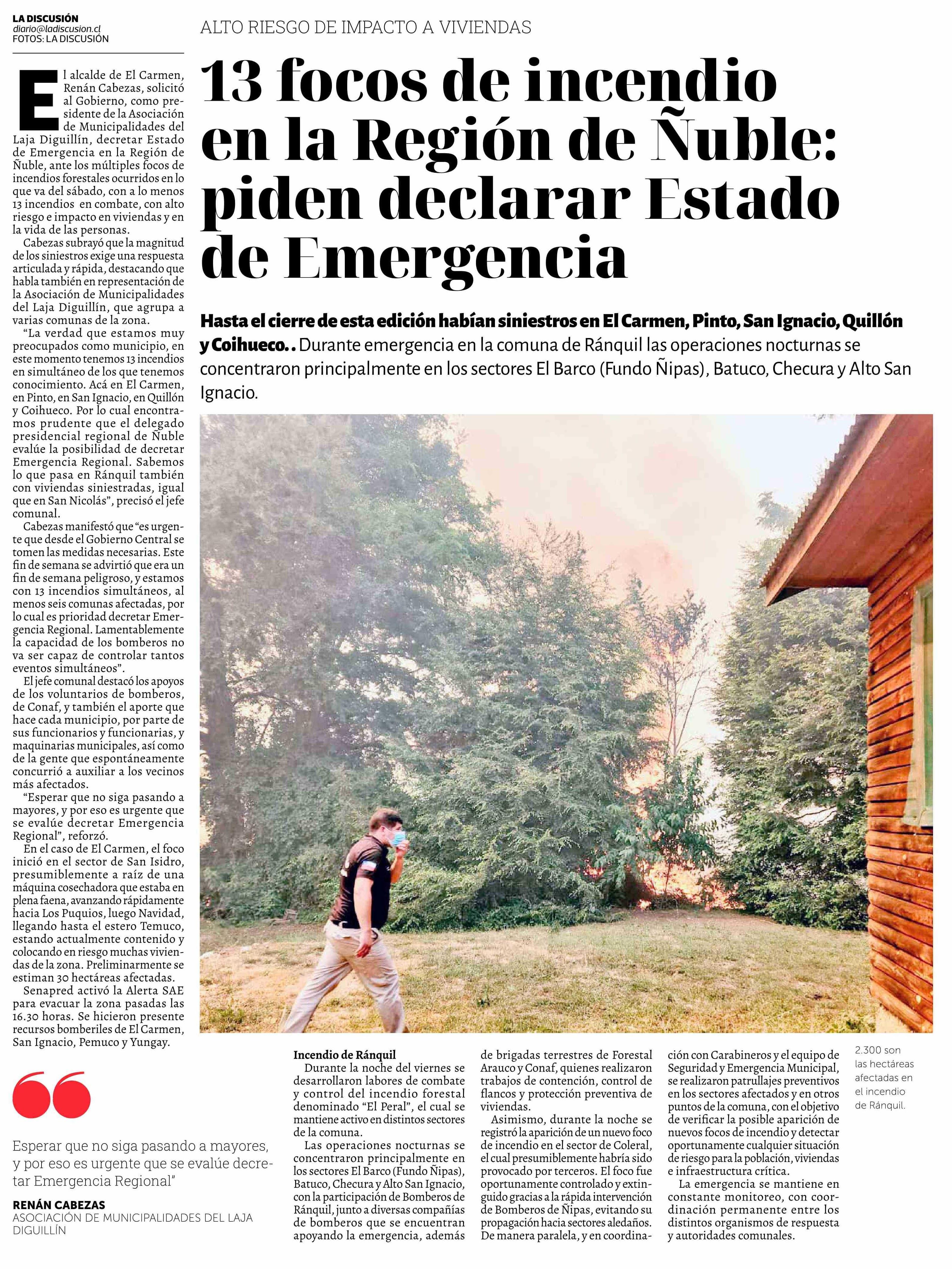 13 Focos de incendio en la Región de Nuble: piden declarar Estado de Emergencia 18-01-2026 La Discusión |