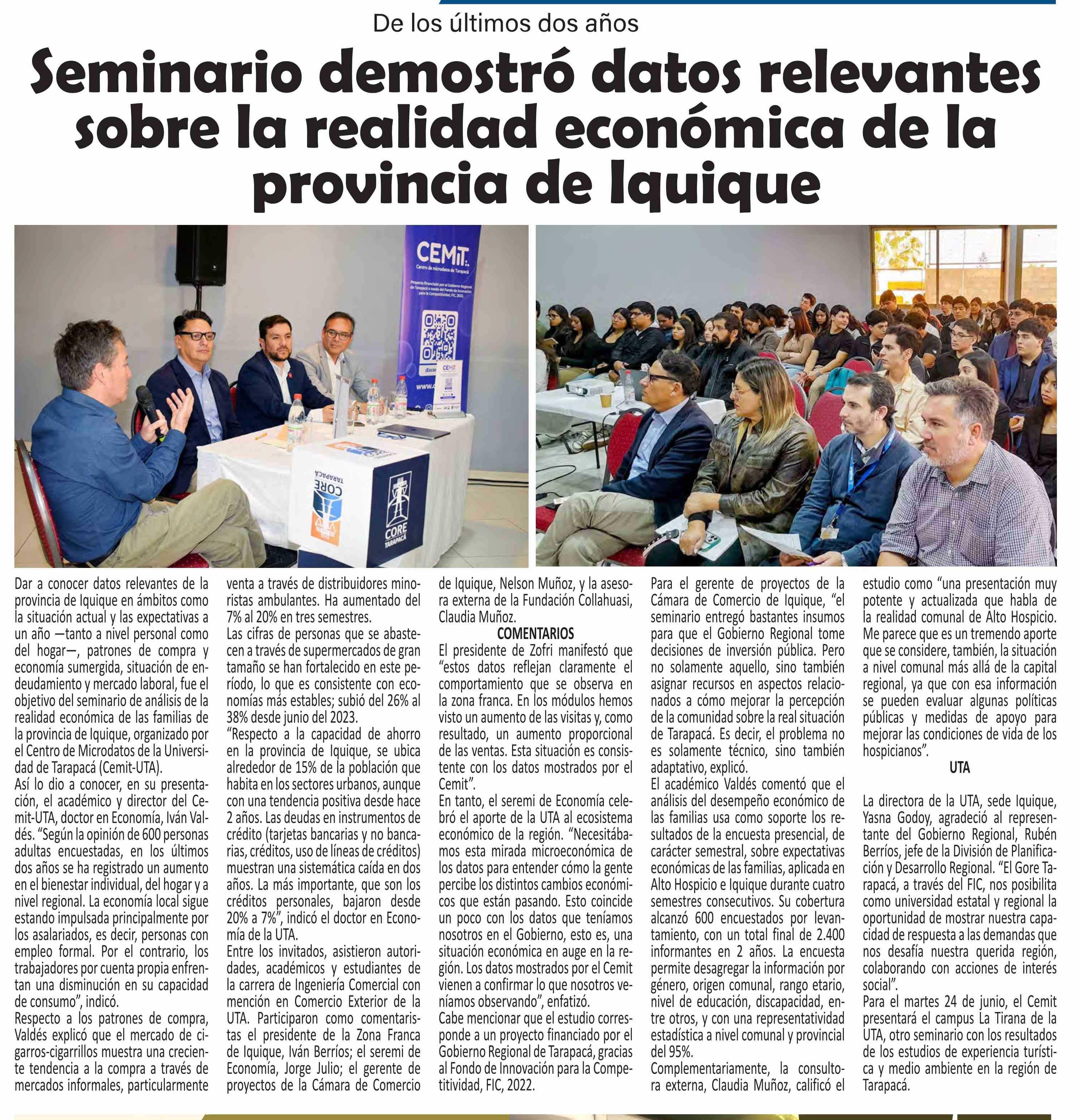 Seminario demostró datos relevantes sobre la realidad económica de la provincia de Iquique 22-06-2025 El Longino |