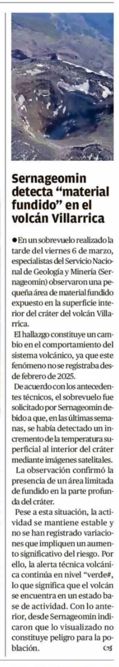 Sernageomin detecta "material fundido" en el volcán Villarrica 09-03-2026 El Austral de la Araucanía |