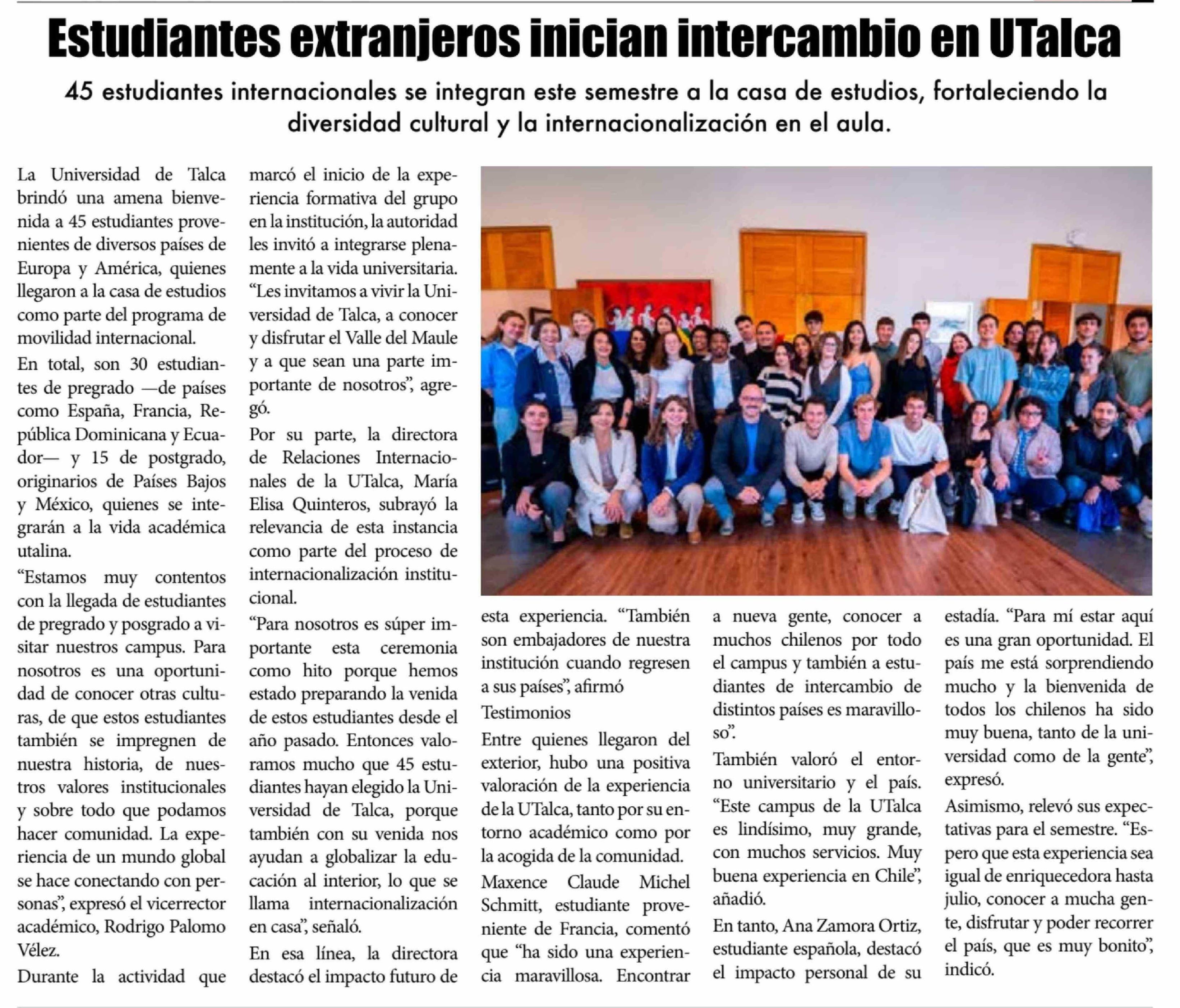 Título: Estudiantes extranjeros inician intercambio en UTalca