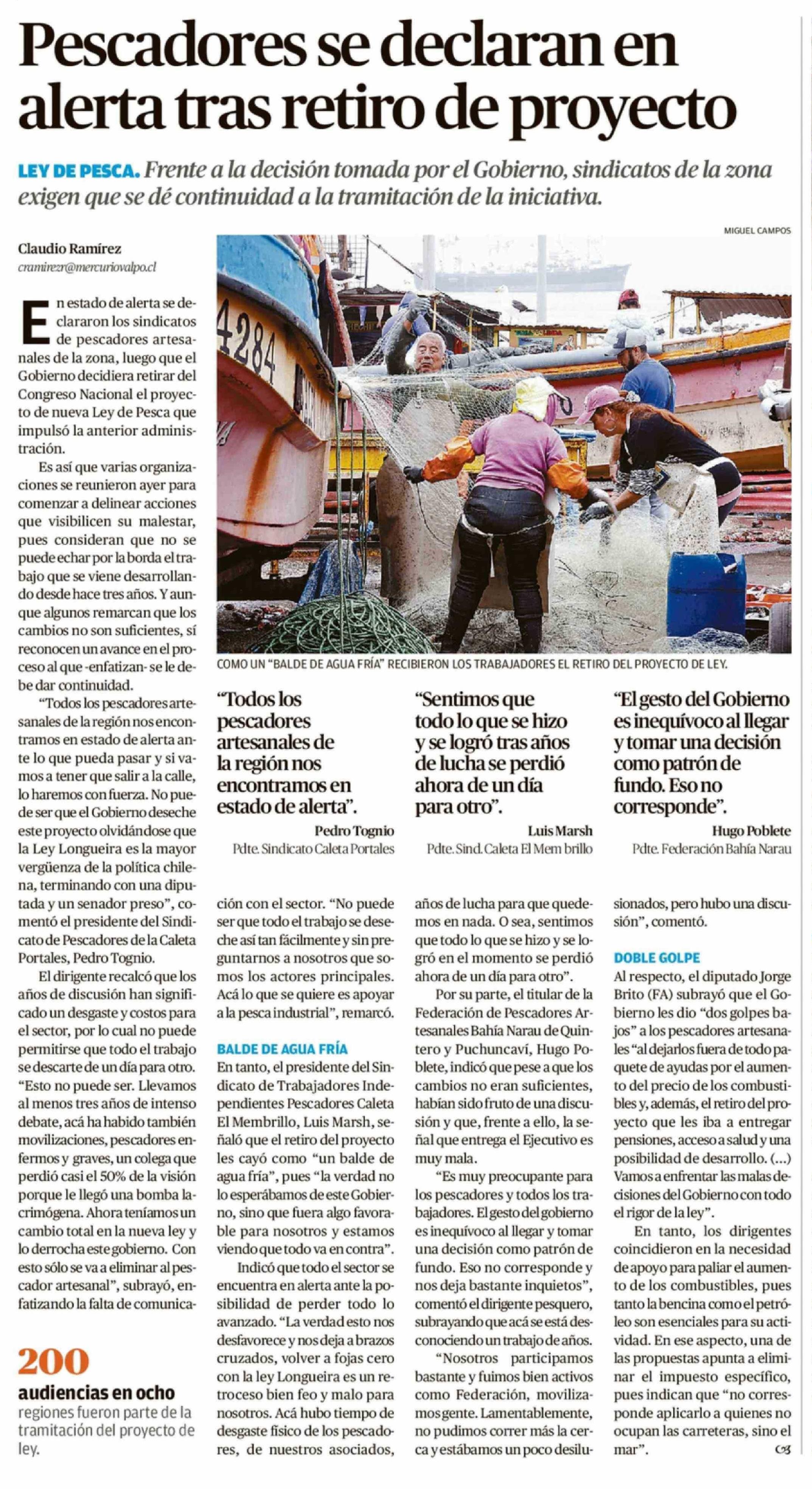 Título: Pescadores se declaran en alerta tras retiro de proyecto