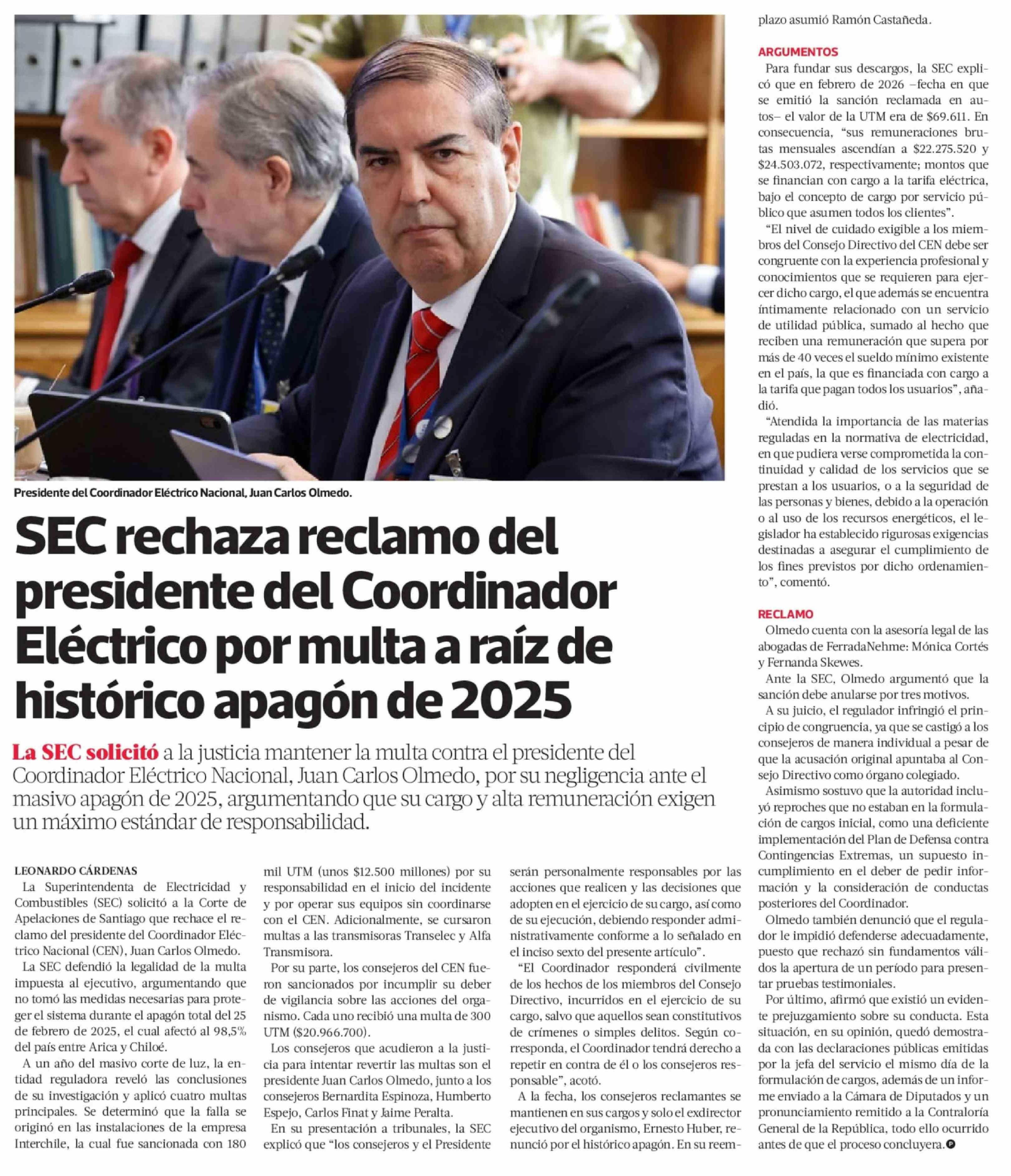 | Título: | SEC rechaza reclamo del presidente del Coordinador Eléctrico por multa a raíz de histórico apagón de 2025 |