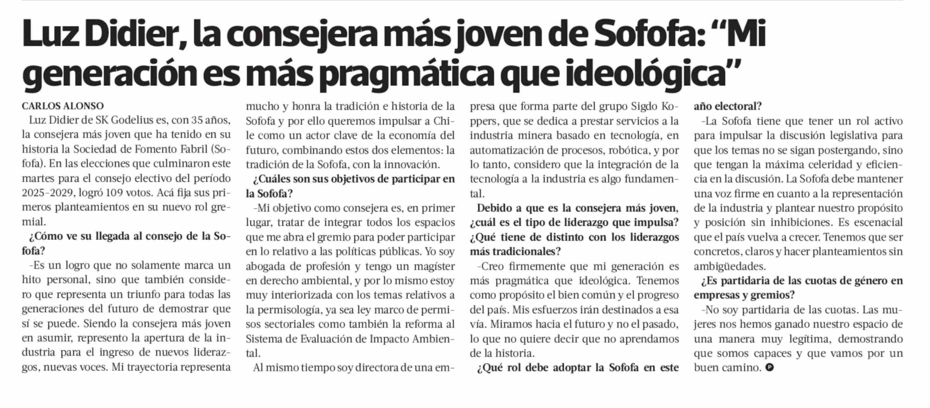Título: Luz Didier, la consejera más joven de Sofofa: “Mi generación es más pragmática que ideológica”