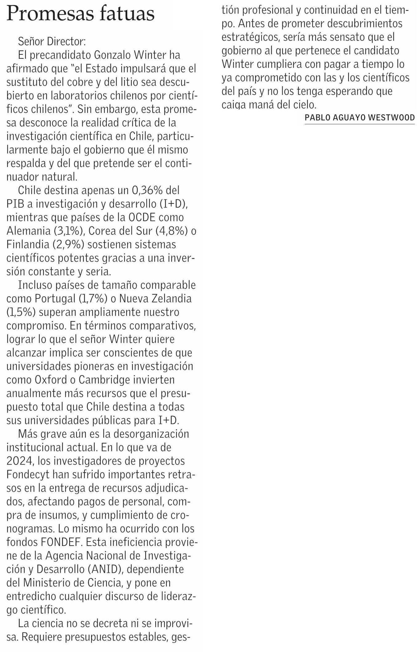 CARTAS: Promesas fatuas 17-06-2025 El Mercurio |
