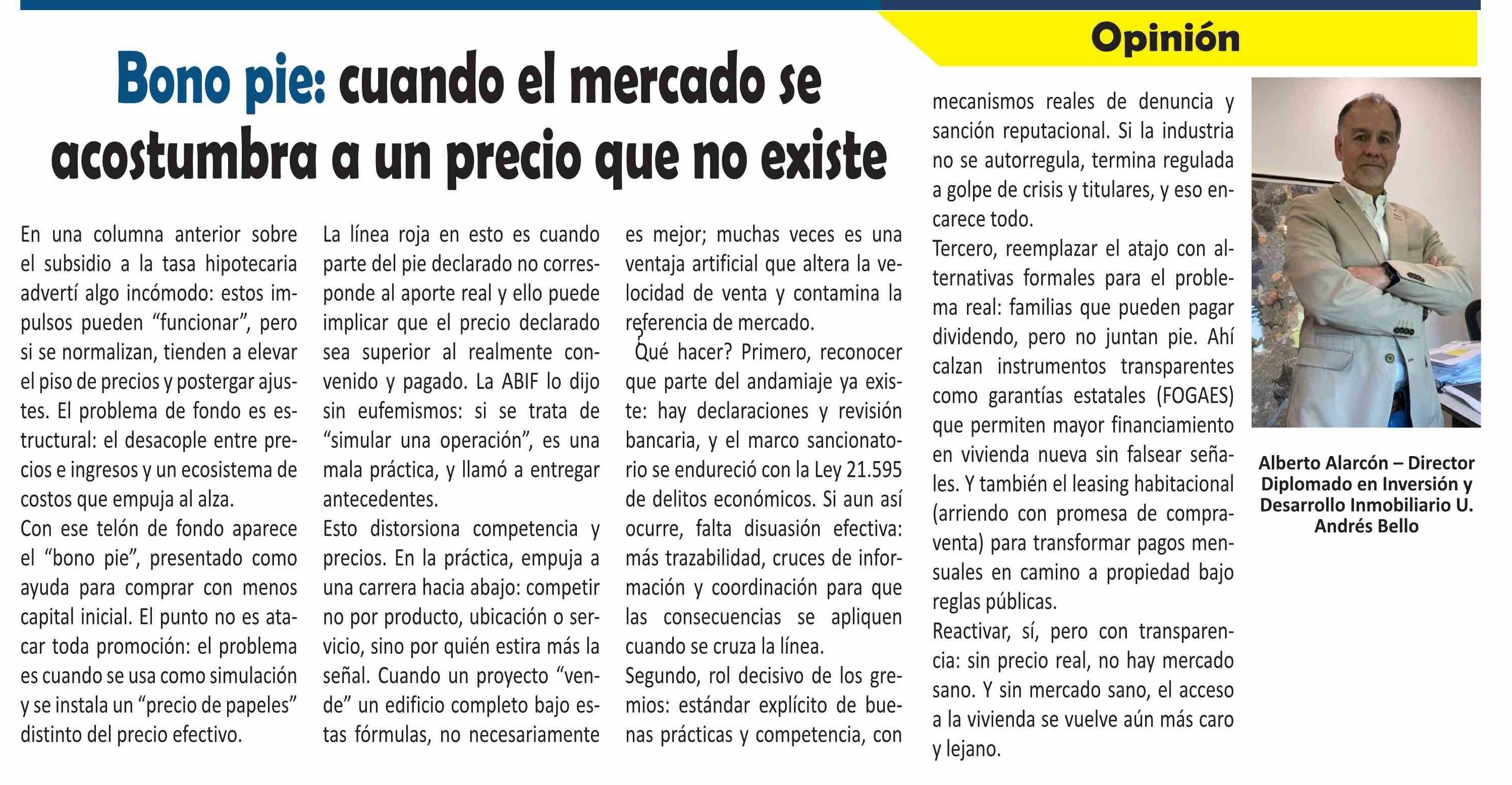 | Título: | Bono pie: cuando el mercado se acostumbra a un precio que no existe |