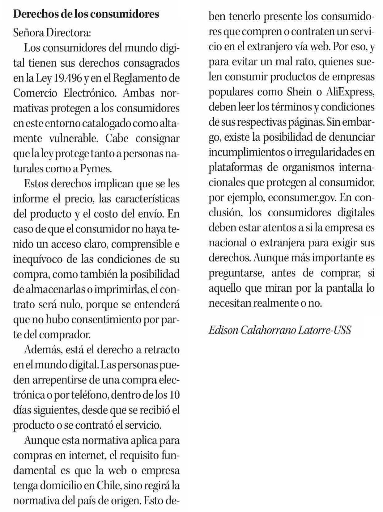 Derechos de los consumidores 28-06-2023 Diario Concepción |