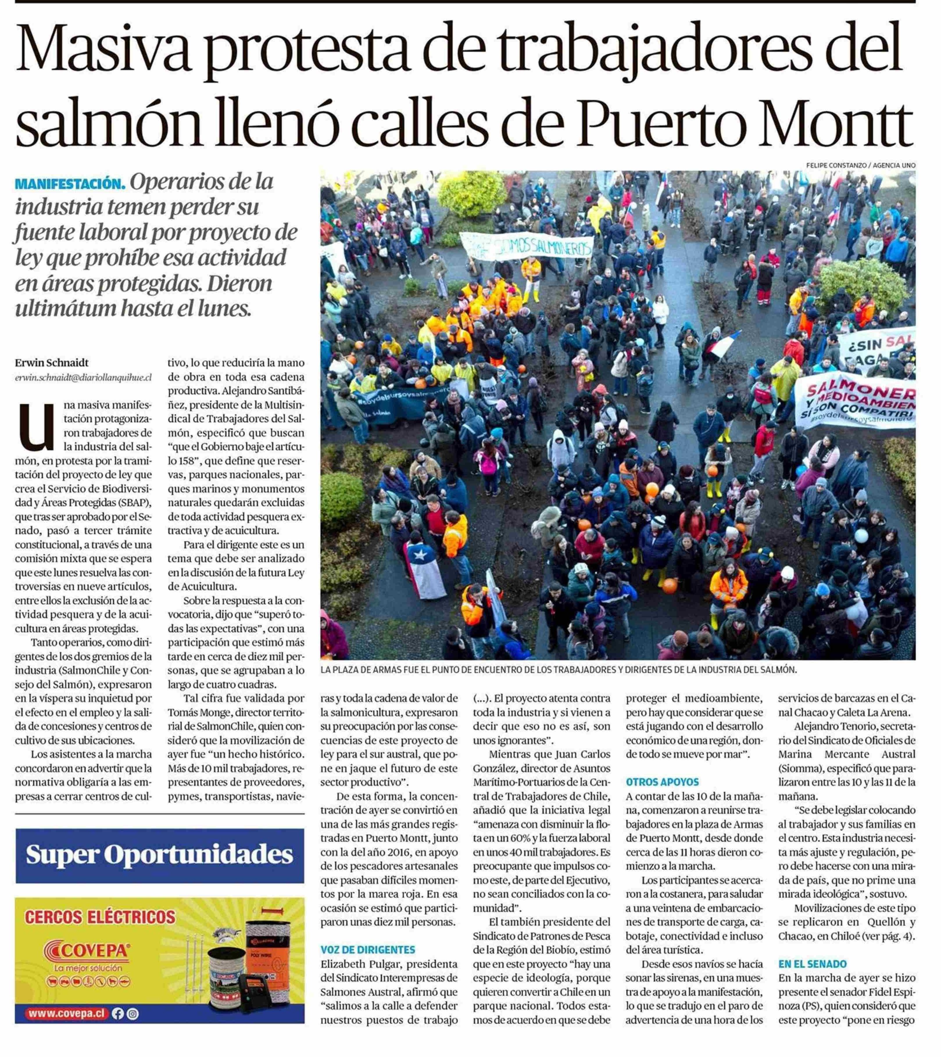 | Título: | Masiva protesta de trabajadores del salmón llenó calles de Puerto Montt |