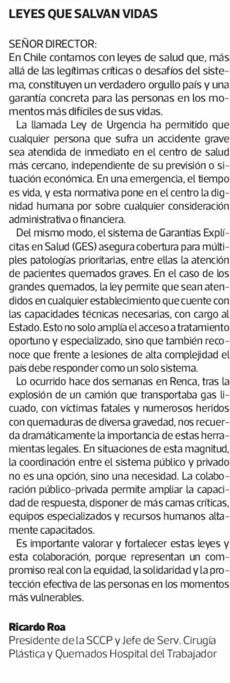 CARTAS: LEYES QUE SALVAN VIDAS 04-03-2026 La Tercera |