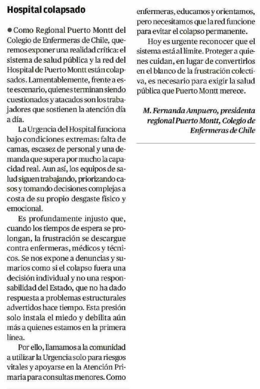 Fecha: 11-01-2026 Sector: Opinión - Cartas Región: Región de Los Lagos