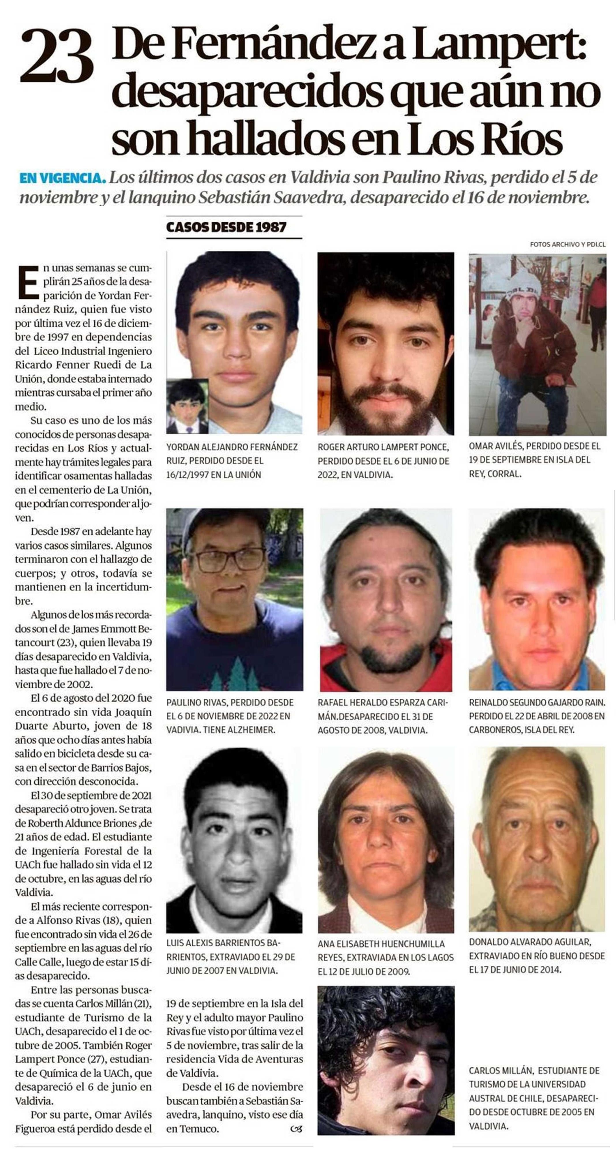 23 De Fernández a Lampert: desaparecidos que aún no son hallados en Los Ríos 28-11-2022 Diario Austral Región de Los Ríos |