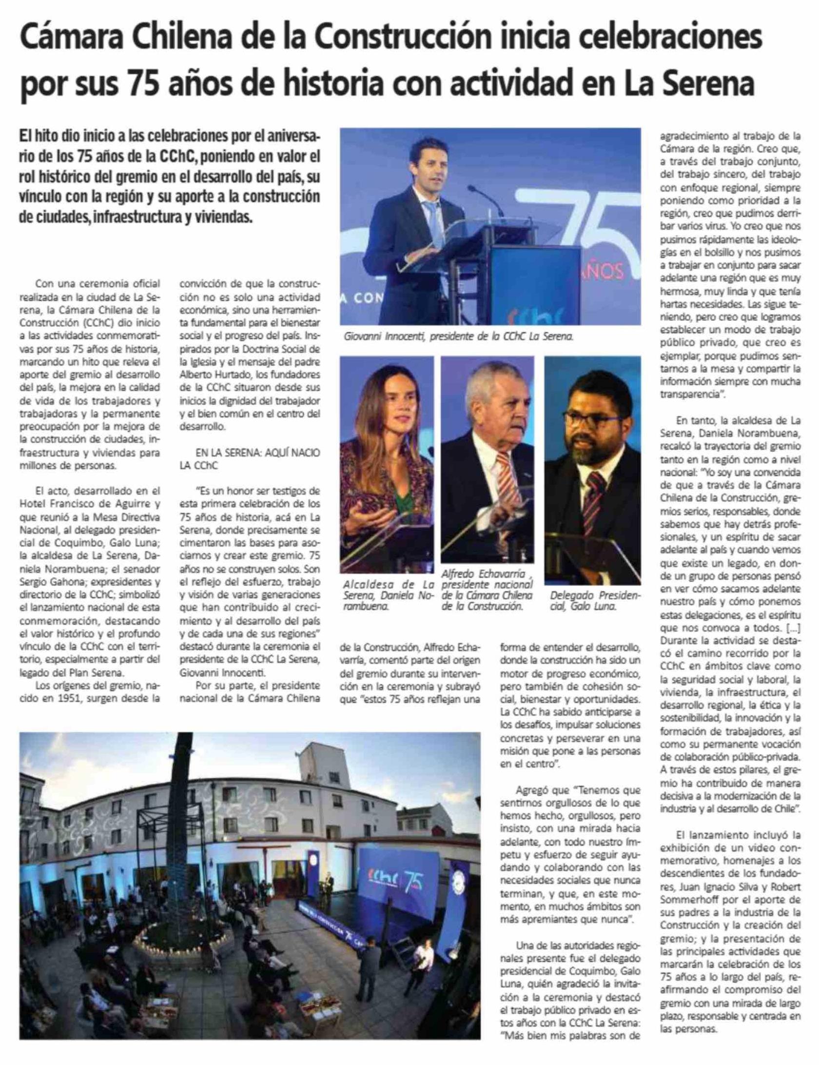 Título: Cámara Chilena de la Construcción inicia celebraciones por sus 75 años de historia con actividad en La Serena