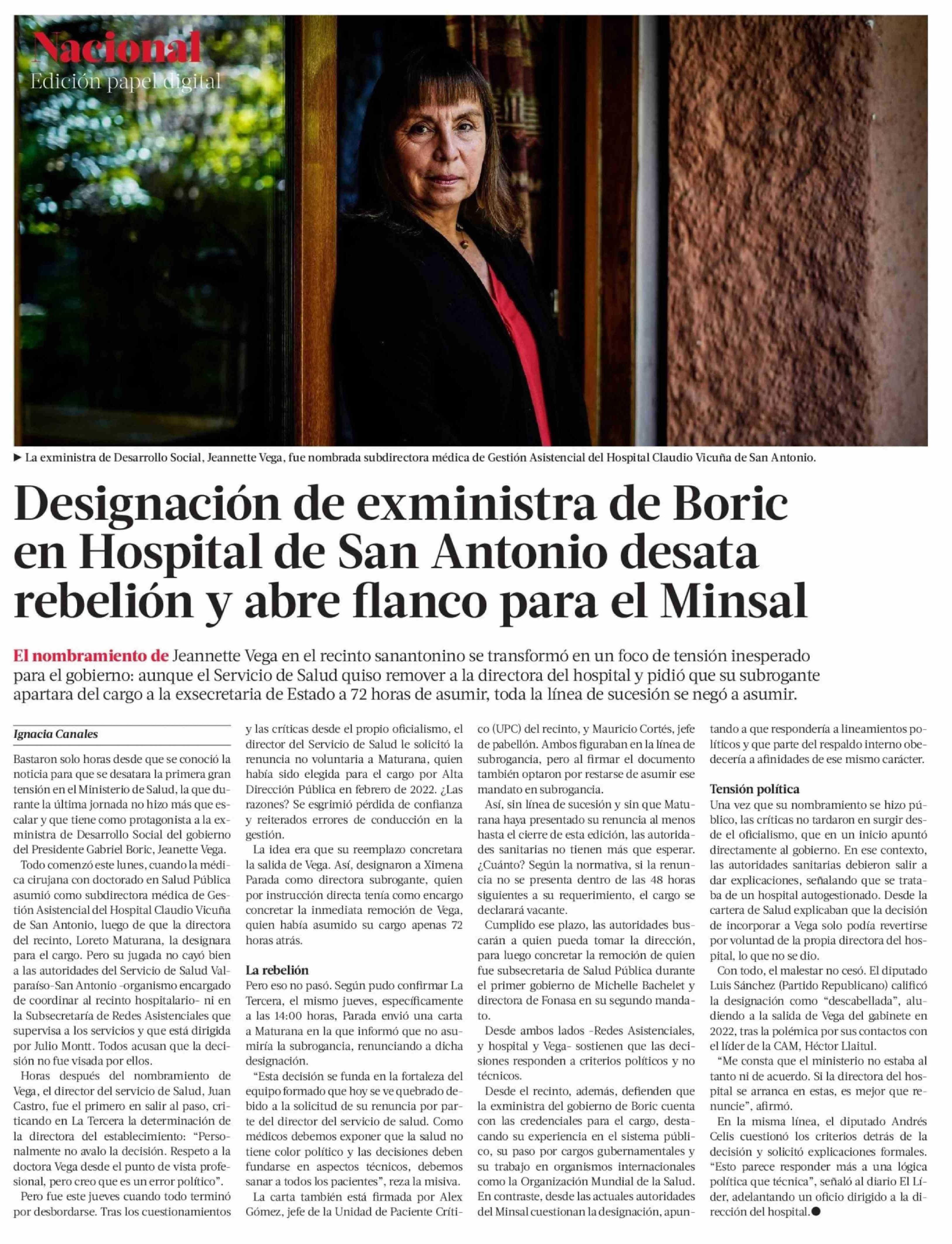 Título: Designación de exministra de Boric en Hospital de San Antonio desata rebelión y abre flanco para el Minsal