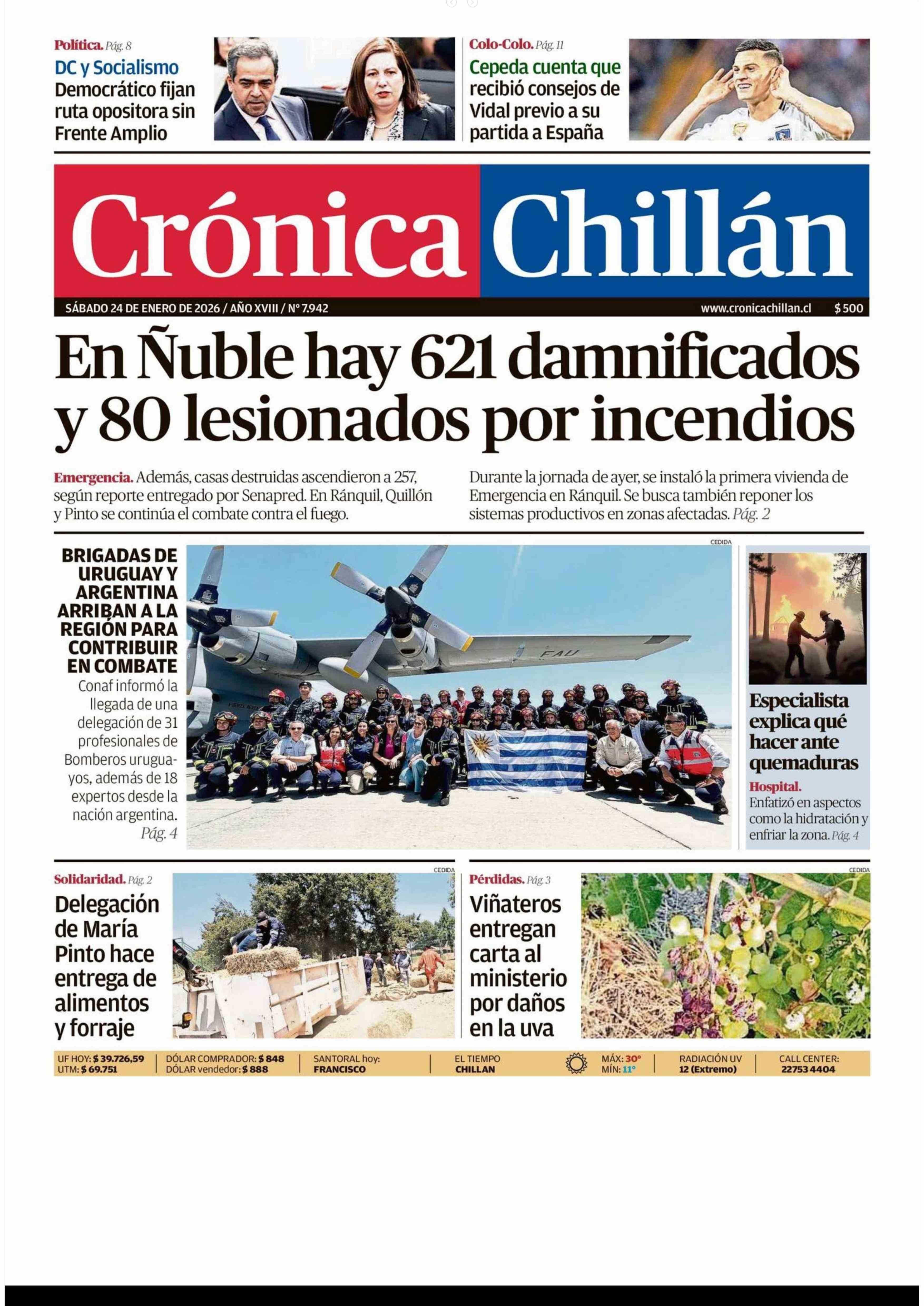 PORTADA CRÓNICA CHILLÁN CHILE 24-01-2026 Crónica de Chillán |