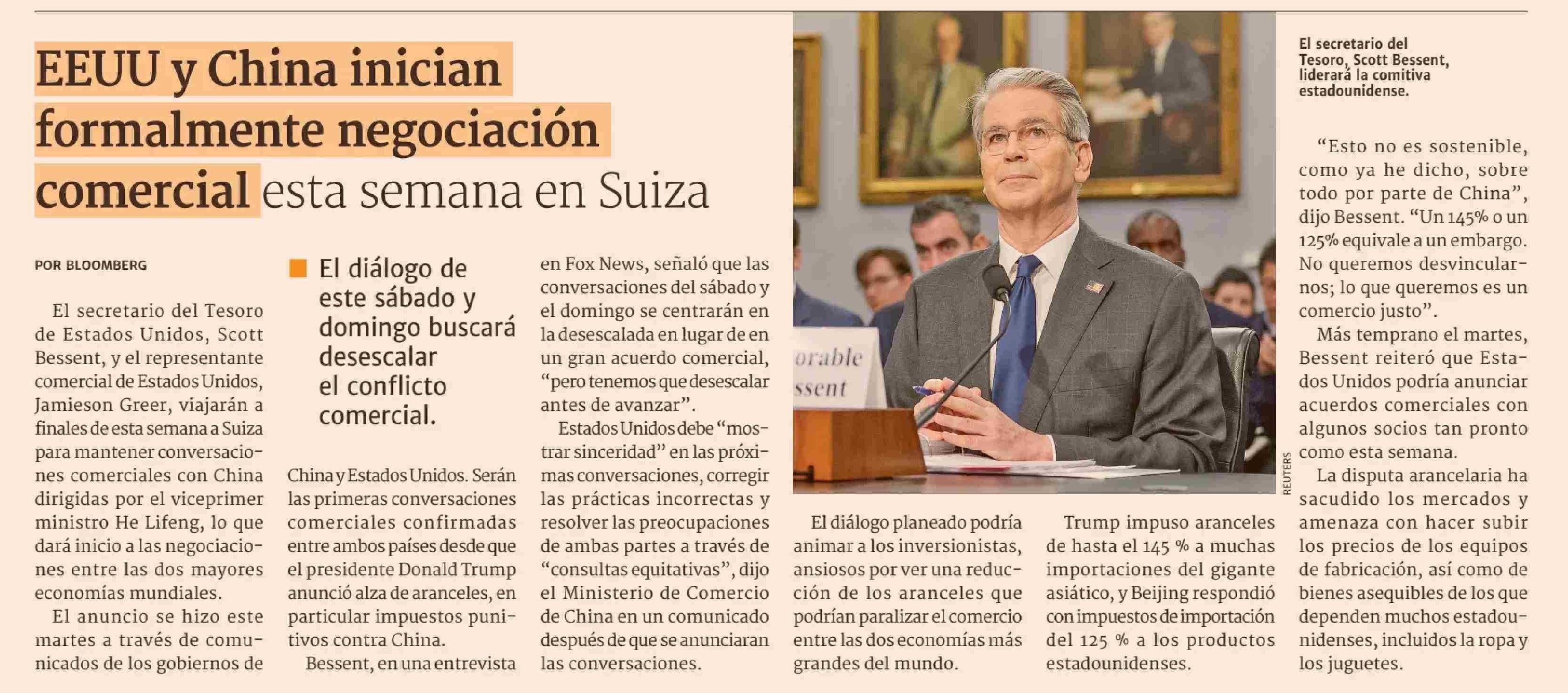 EEUU y China inician formalmente negociación comercial esta semana en Suiza 07-05-2025 Diario Financiero |