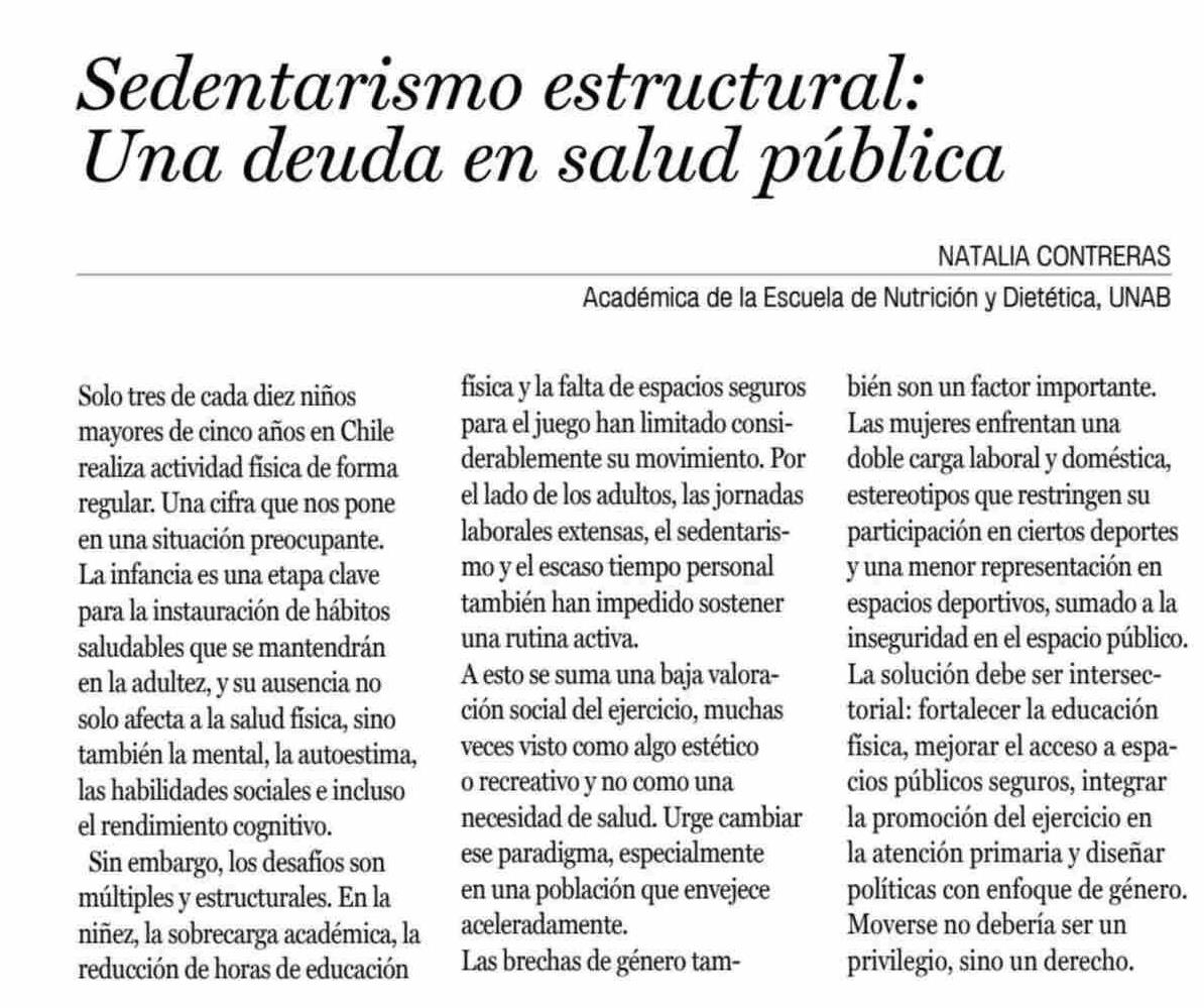 Título: CARTAS: Sedentarismo estructural: Una deuda en salud pública
