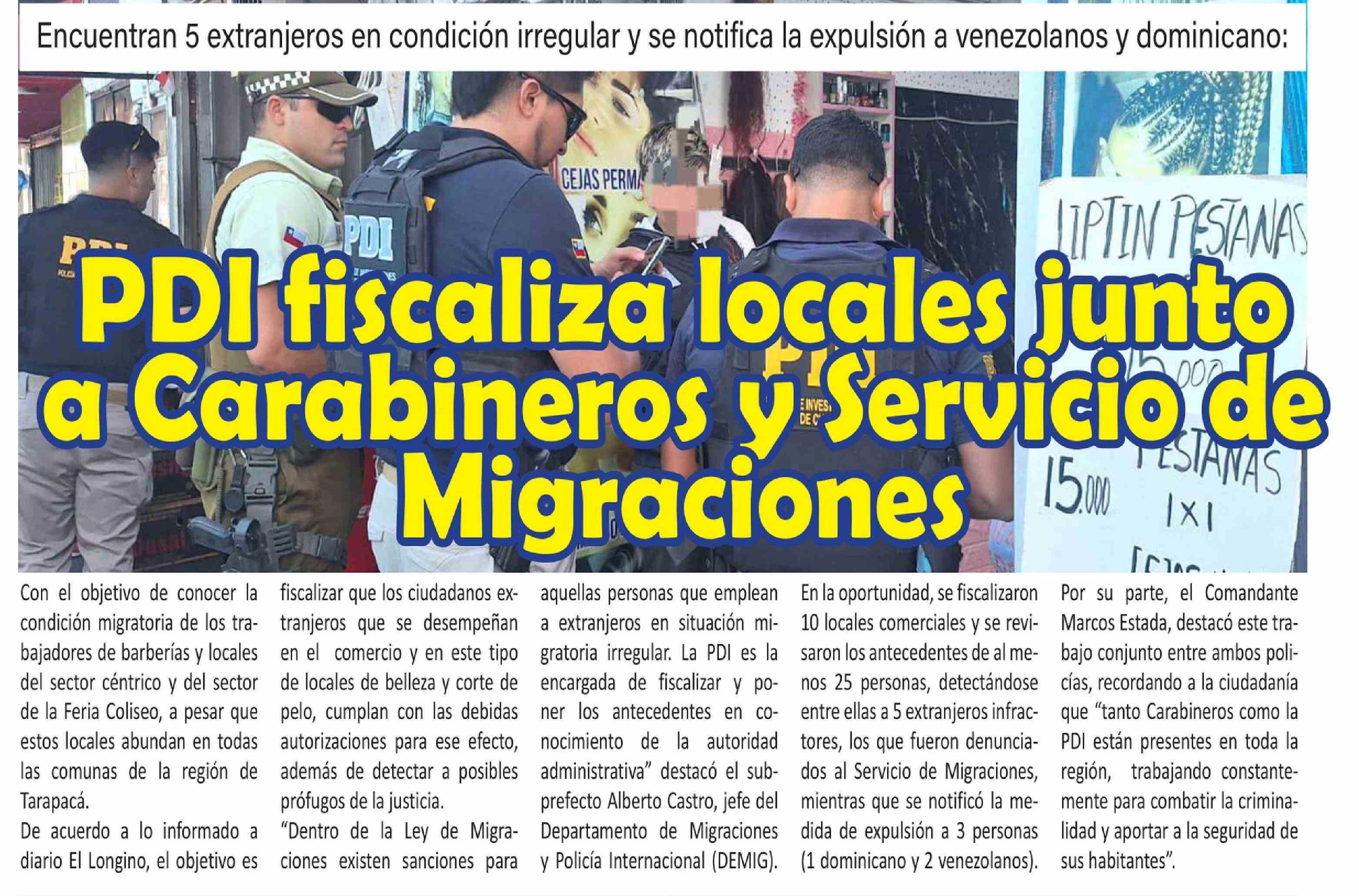 Título: PDI fiscaliza locales junto a Carabineros y Servicio de Migraciones