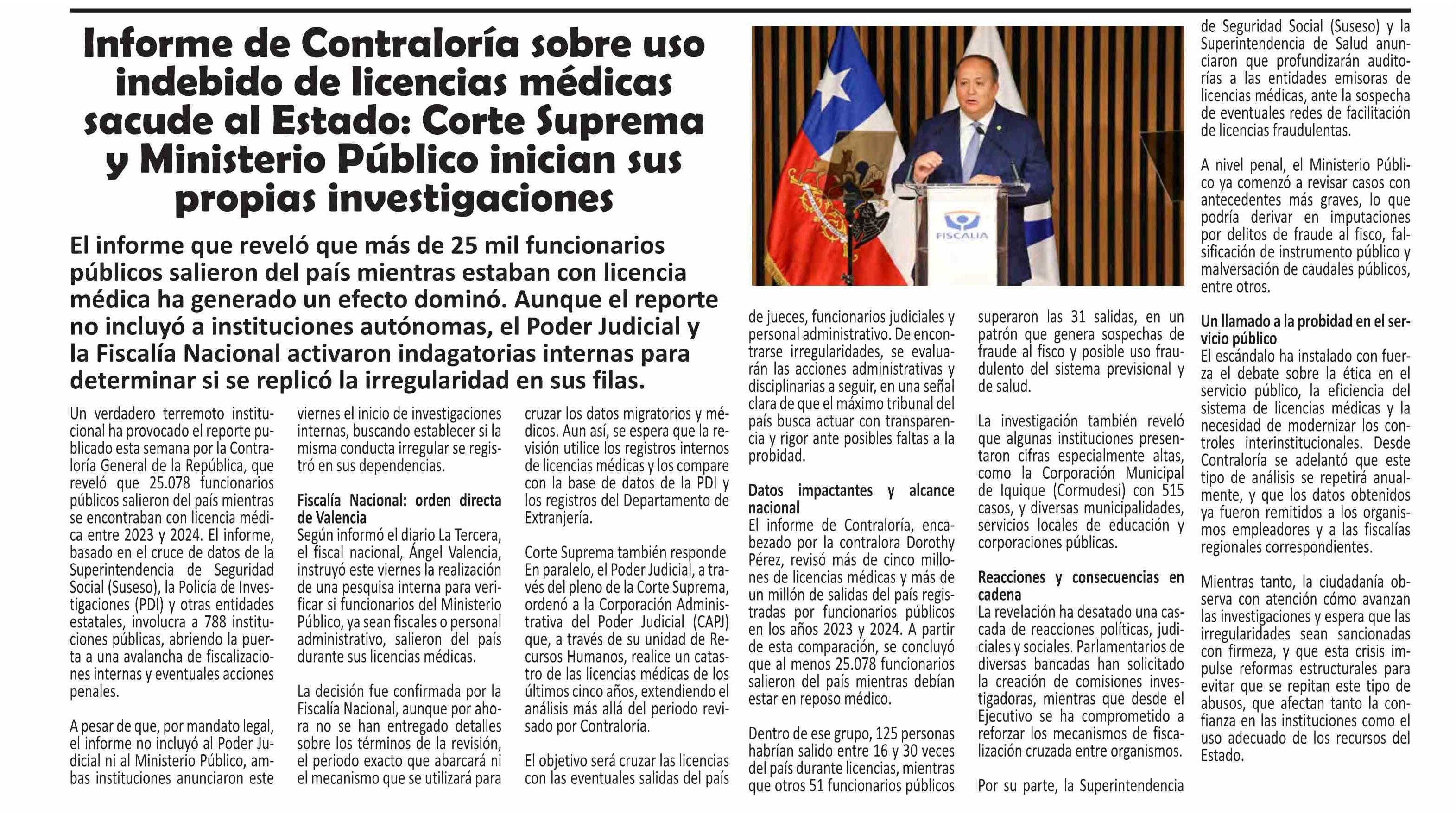 Informe de Contraloría sobre uso indebido de licencias médicas sacude al Estado: Corte Suprema y Ministerio Público inician sus propias investigaciones 25-05-2025 El Longino |