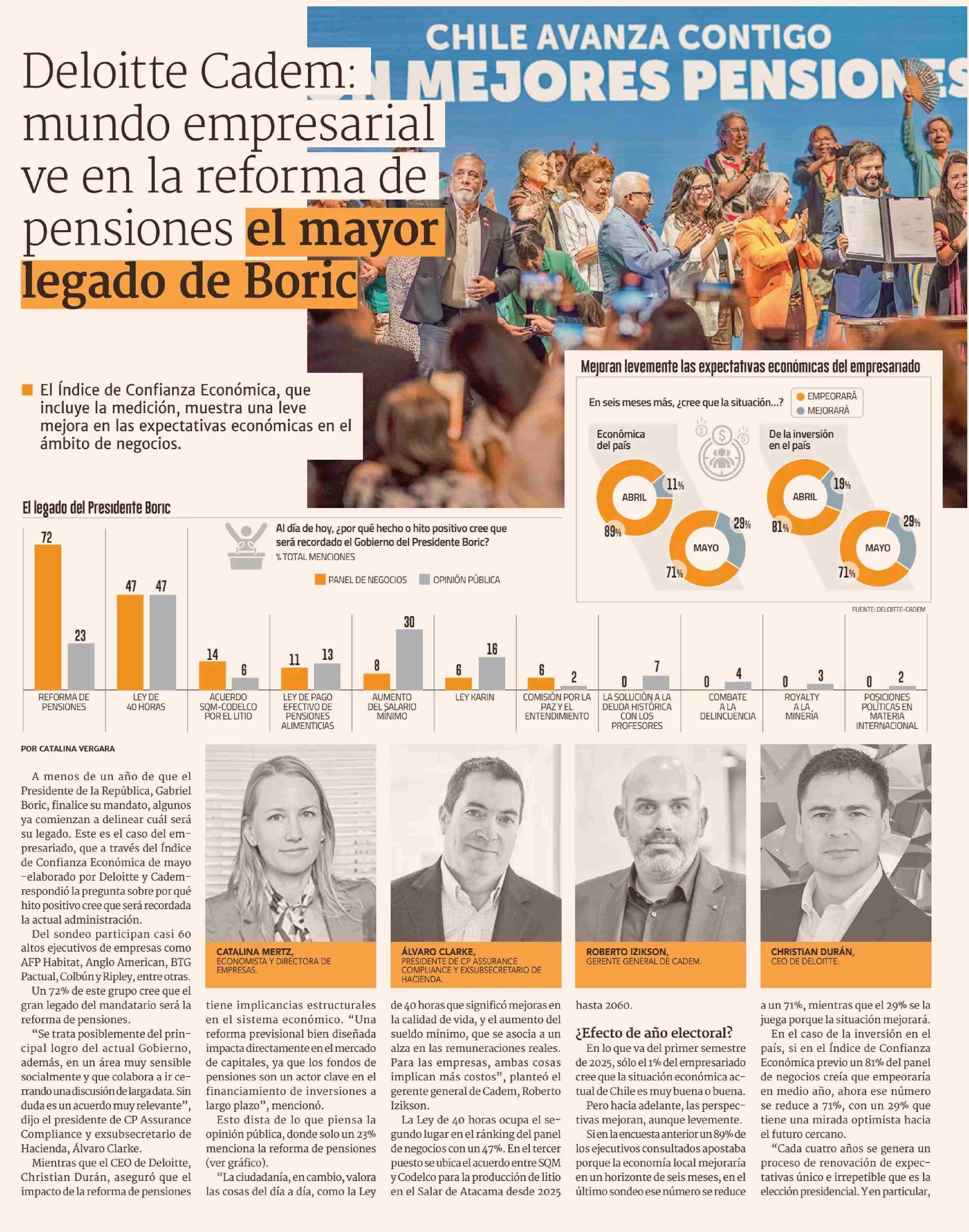 Deloitte Cadem: mundo empresarial ve en la reforma de pensiones el mayor legado de Boric 23-06-2025 Diario Financiero |