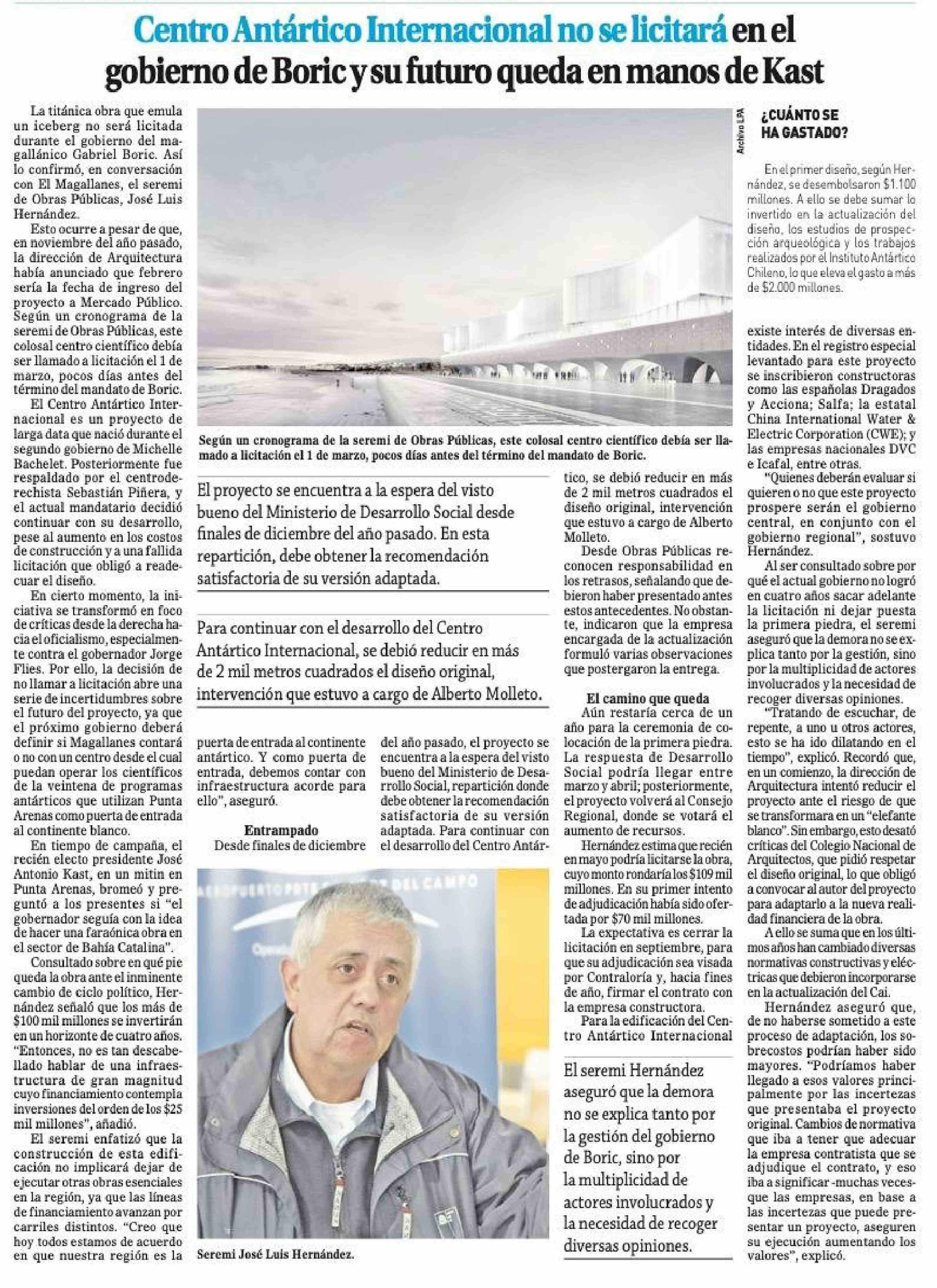 Título: Centro Antártico Internacional no se licitará en el gobierno de Boric y su futuro queda en manos de Kast