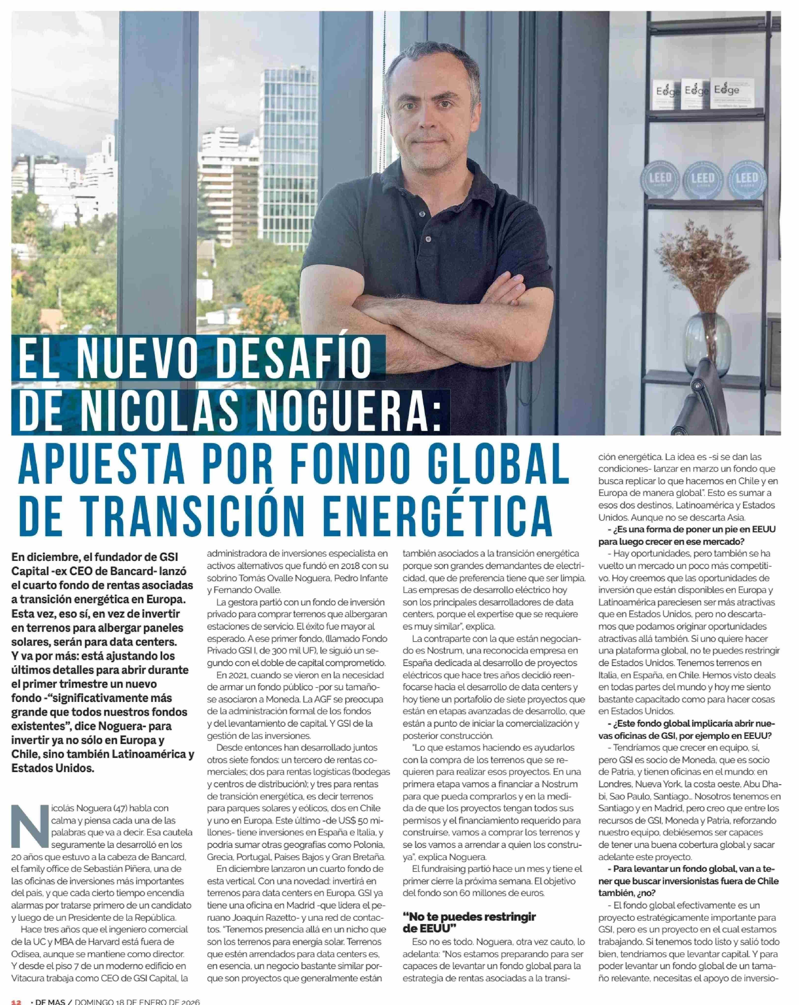 EL NUEVO DESAFIO DE NICOLAS NOGUERA: APUESTA POR FONDO GLOBAL DE TRANSICIÓN ENERGÉTICA 18-01-2026 Diario Financiero |