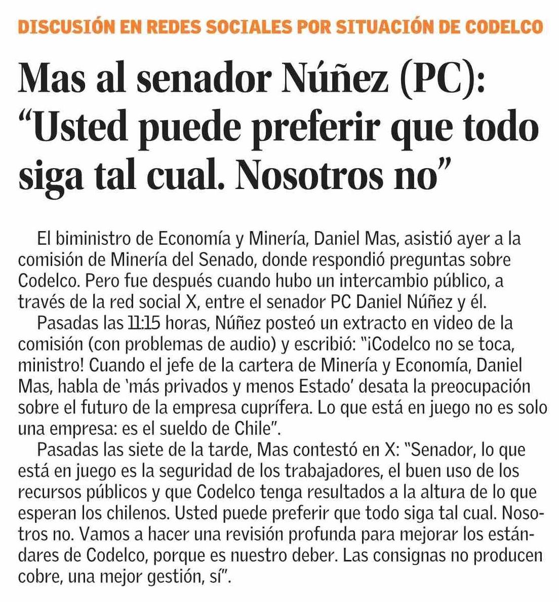 Título: Mas al senador Núñez (PC): “Usted puede preferir que todo siga tal cual. Nosotros no”