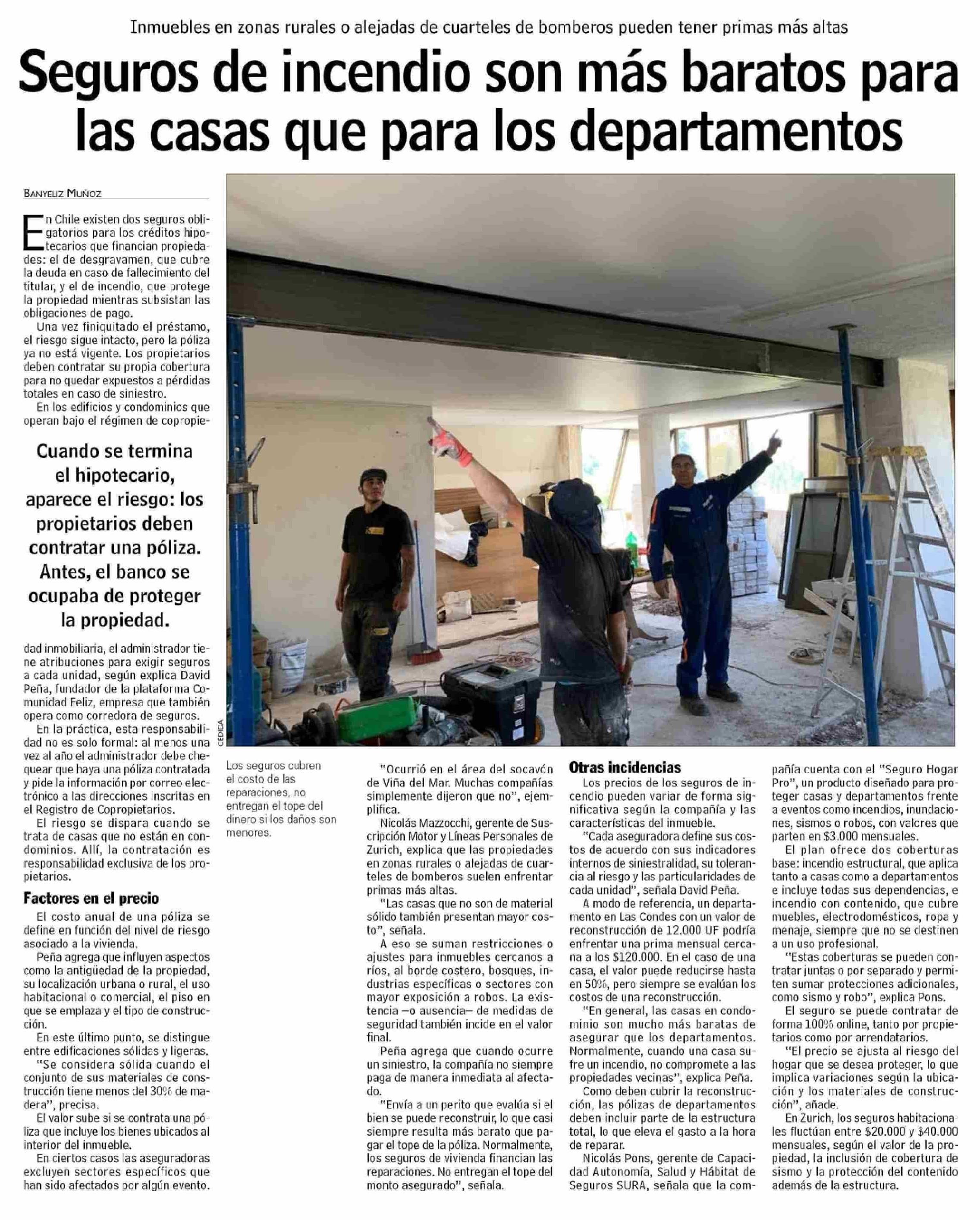 Título: Seguros de incendio son más baratos para las casas que para los departamentos