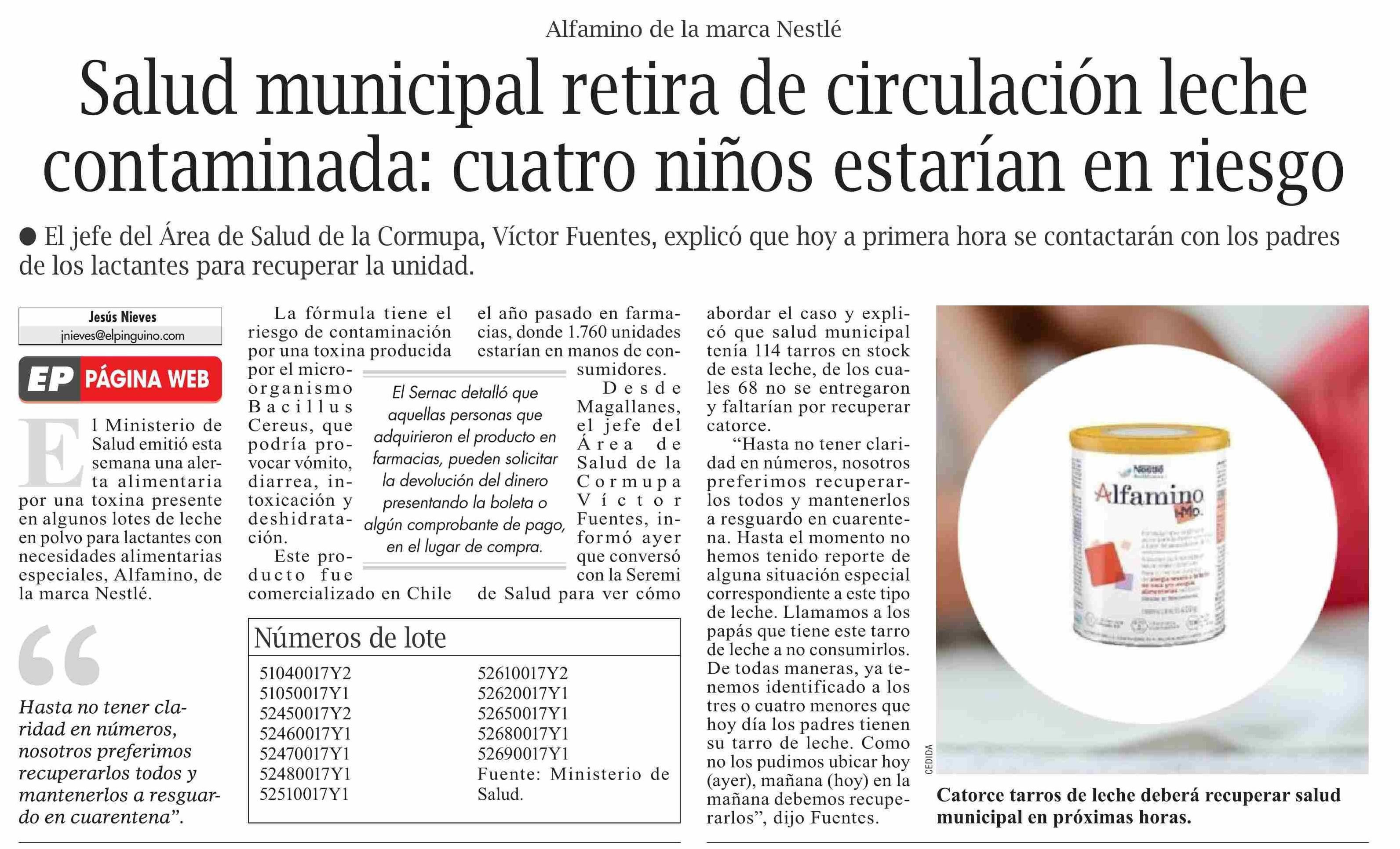 Salud municipal retira de circulación leche contaminada: cuatro niños estarían en riesgo 09-01-2026 El Pingüino |