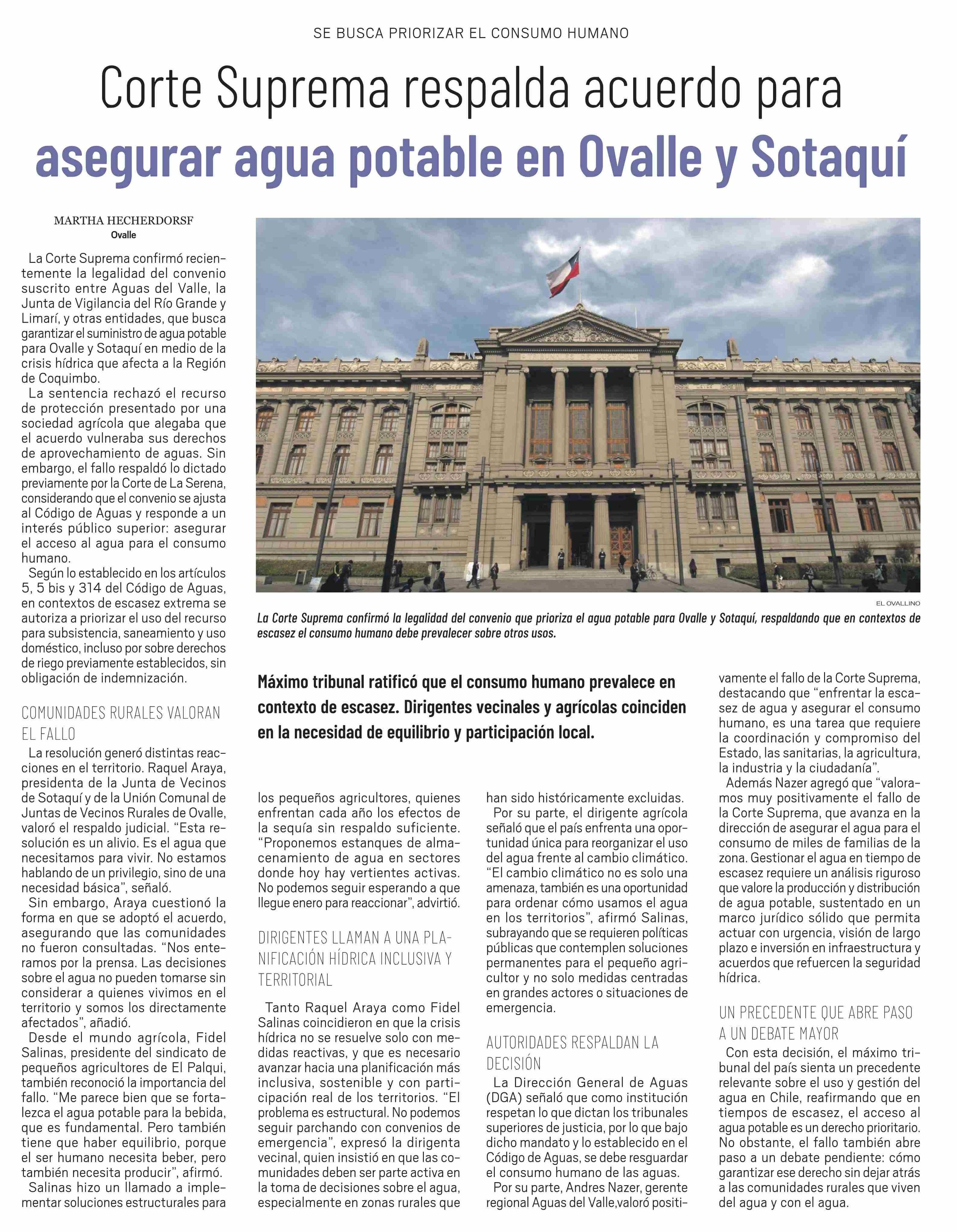 Corte Suprema respalda acuerdo para asegurar agua potable en Ovalle y Sotaquí 22-06-2025 El Ovallino |