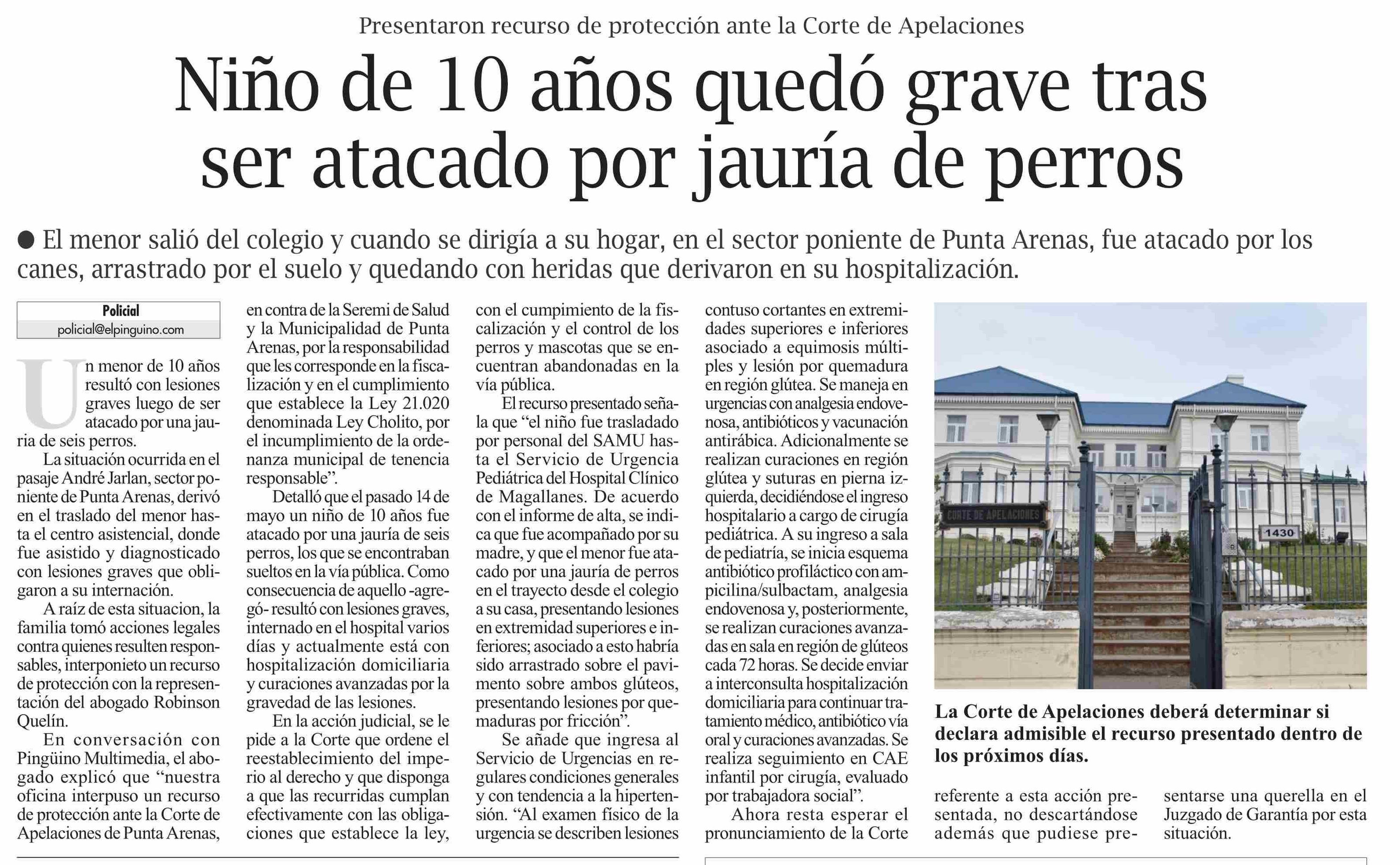 Título: Niño de 10 años quedó grave tras ser atacado por jauría de perros