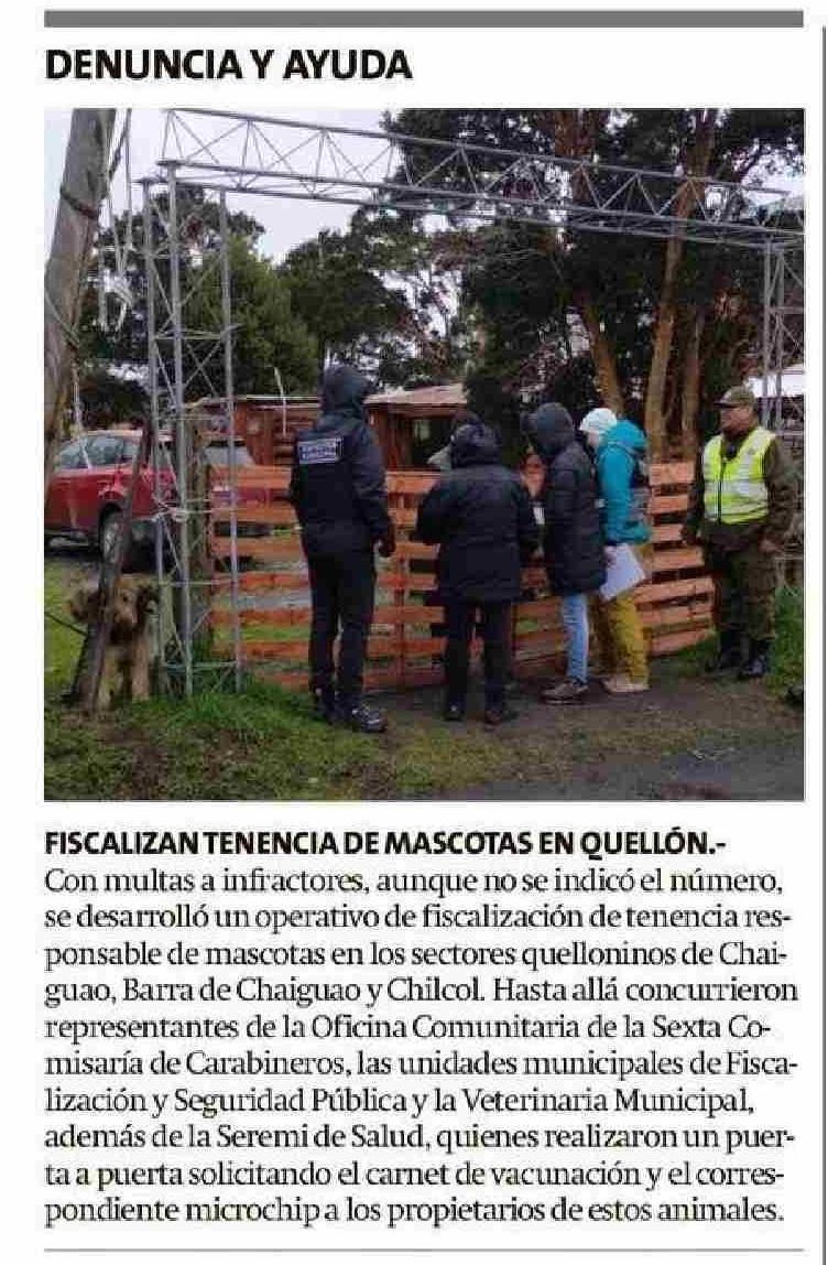 | Título: | FISCALIZAN TENENCIA DE MASCOTAS EN QUELLÓN .- |