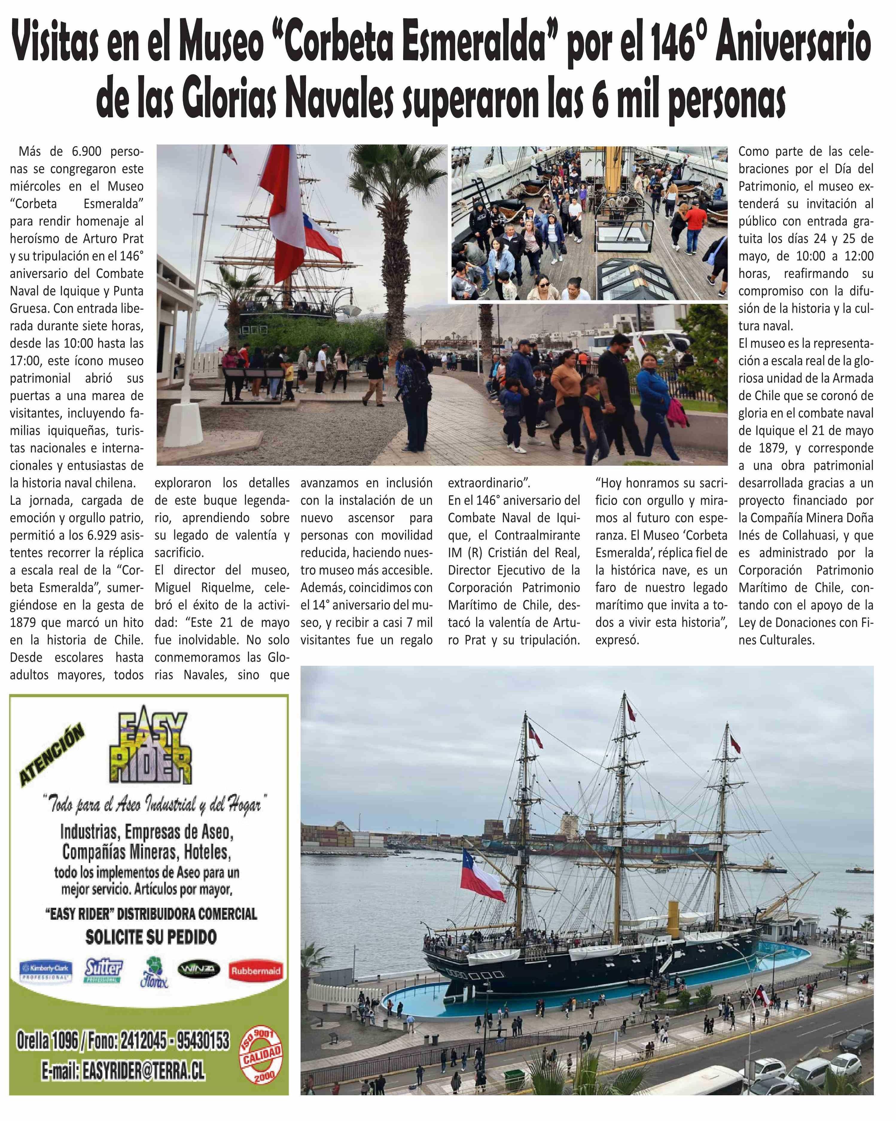 Visitas en el Museo “Corbeta Esmeralda” por el 146° Aniversario de las Glorias Navales superaron las 6 mil personas 23-05-2025 El Longino |