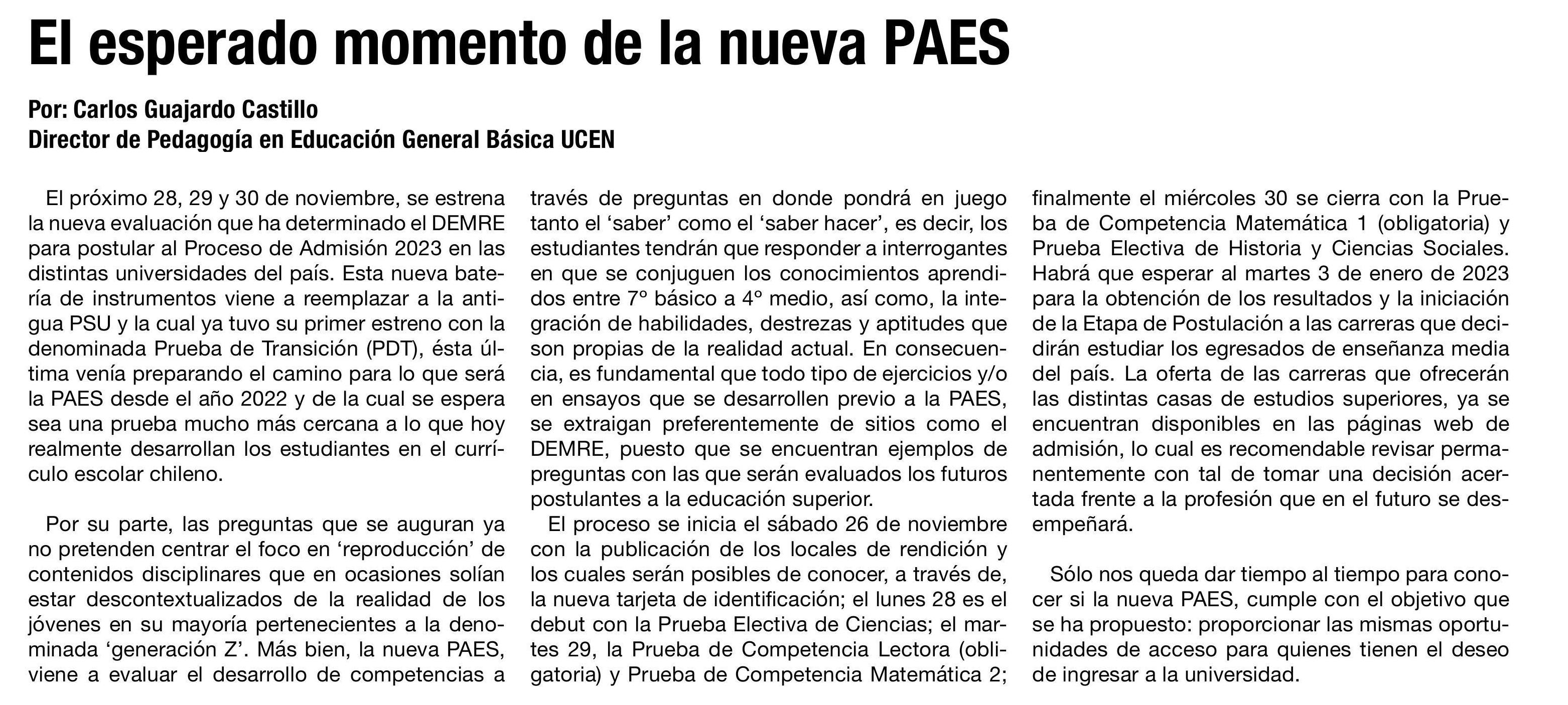 El esperado momento de la nueva PAES 25-11-2022 El Informador |