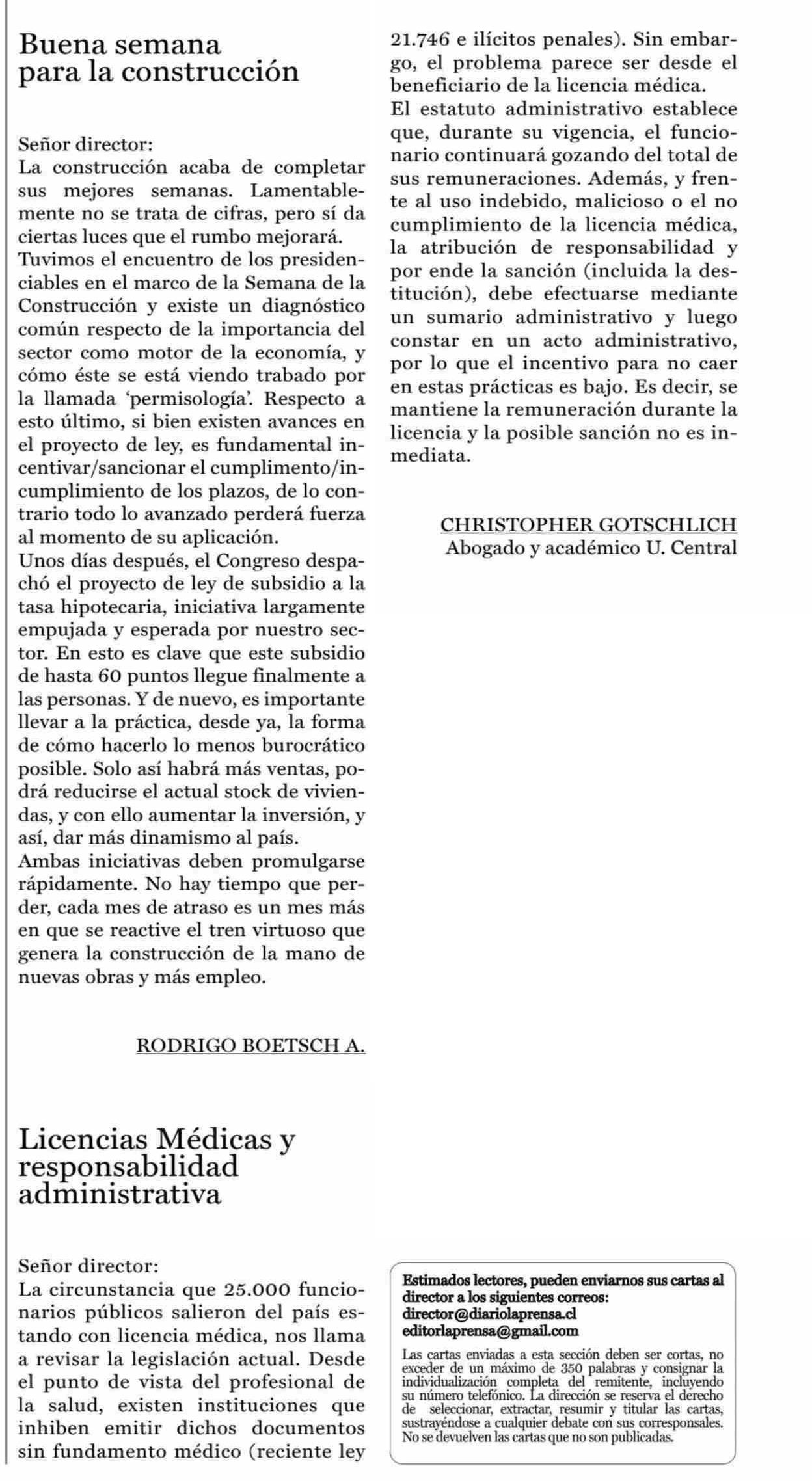 CARTAS: Licencias Médicas y responsabilidad administrativa 29-05-2025 La Prensa de Curicó |