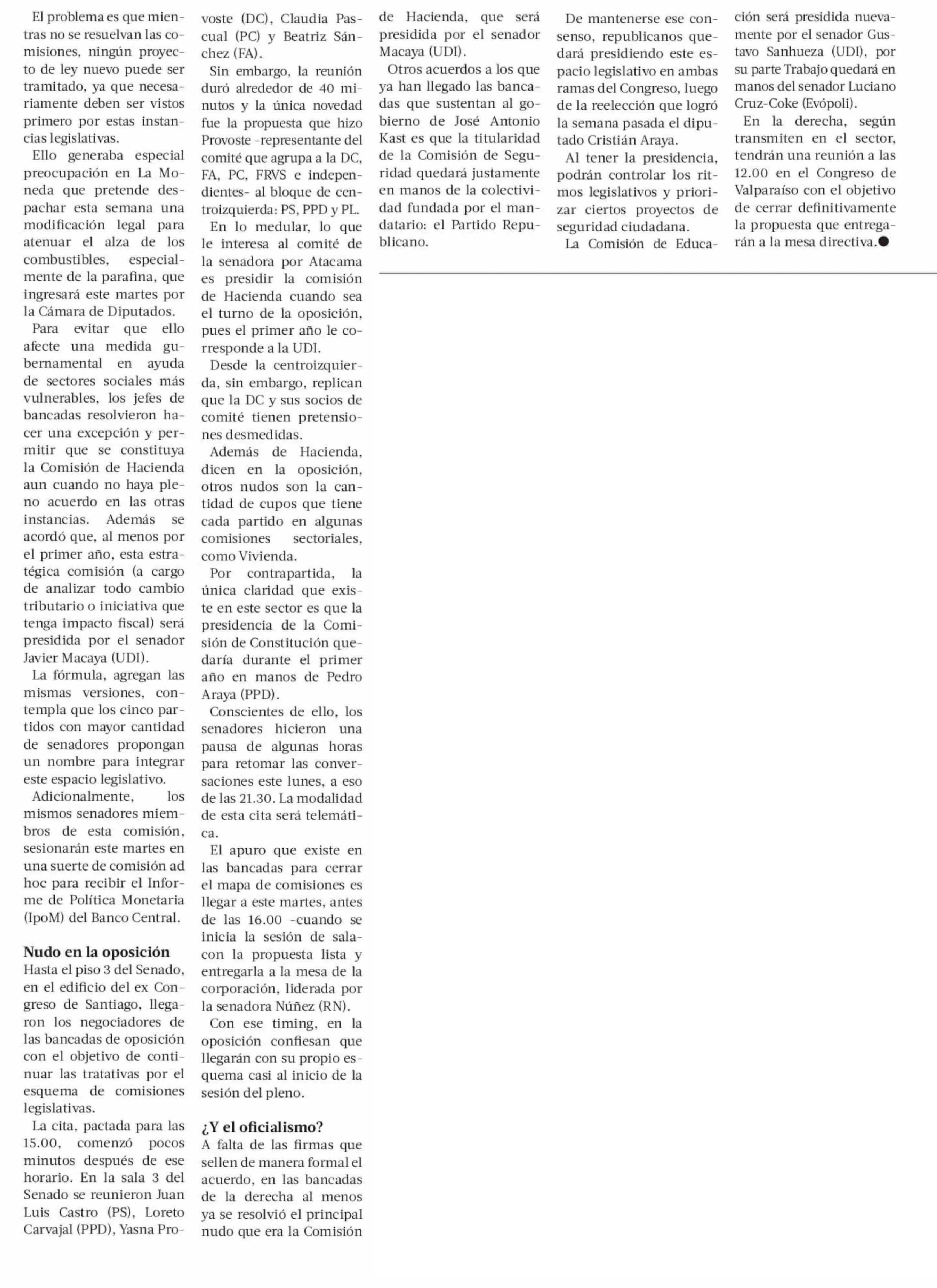 Título: Senadores aún no cierran pacto de comisiones, pero acuerdan hacer una excepción por proyecto de combustibles