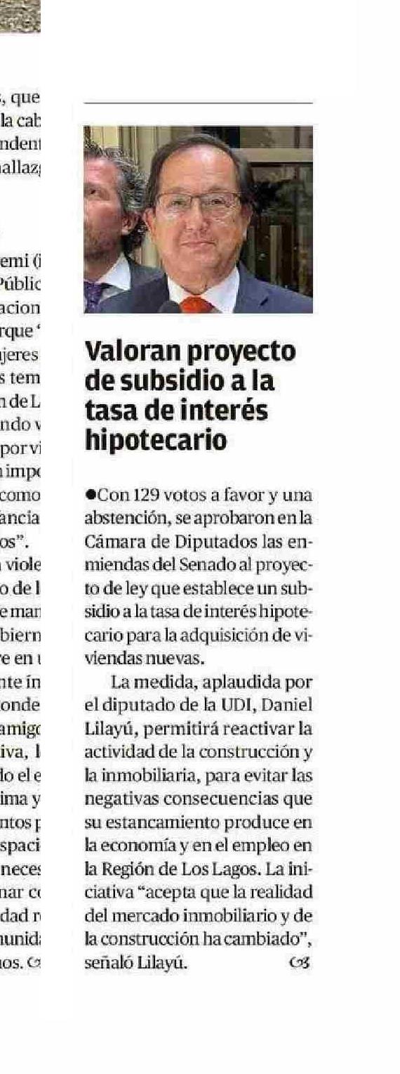Valoran proyecto de subsidio a la tasa de interés hipotecario 24-05-2025 El Llanquihue |