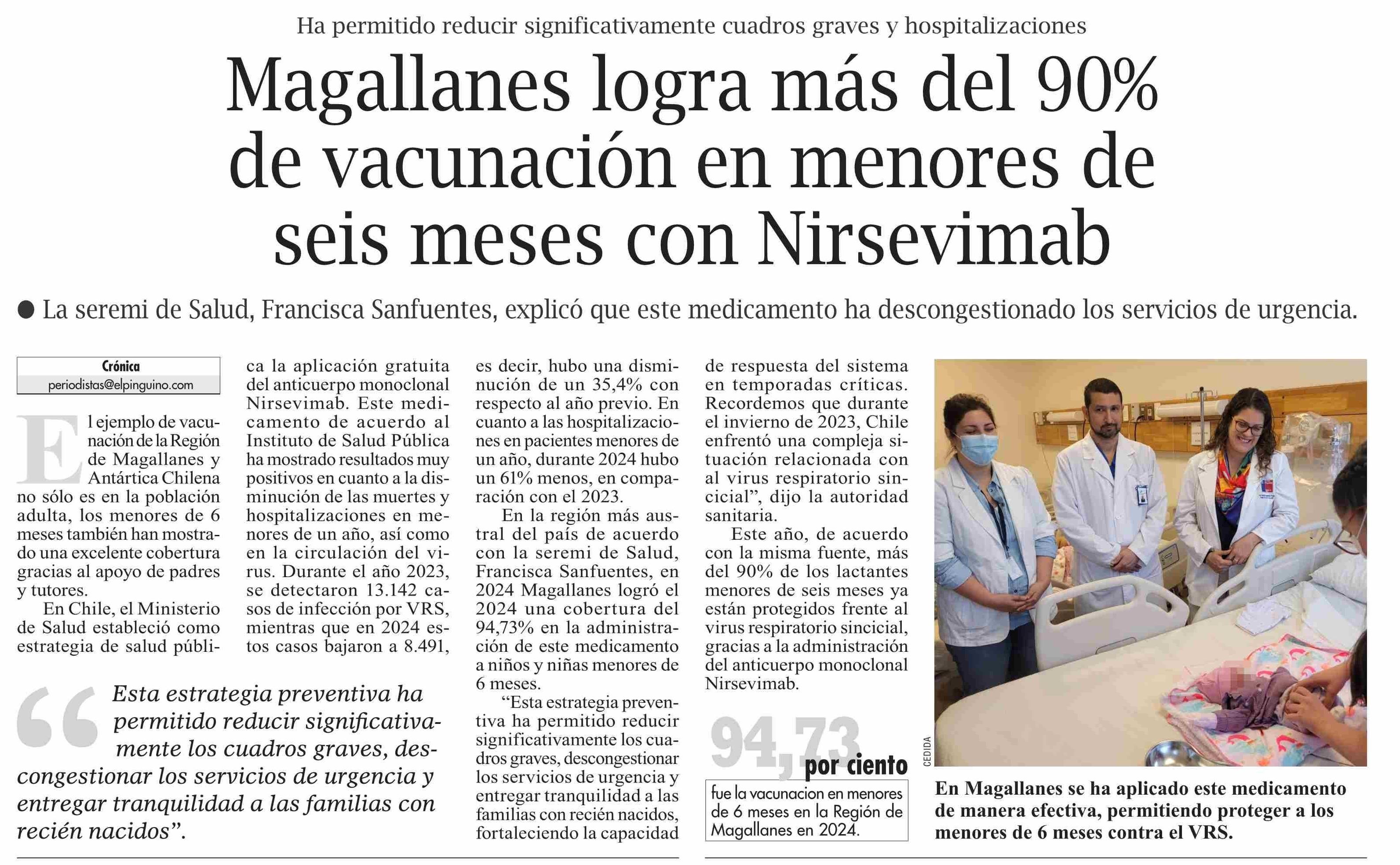 Magallanes logra más del 90% de vacunación en menores de seis meses con Nirsevimab 17-06-2025 El Pingüino |