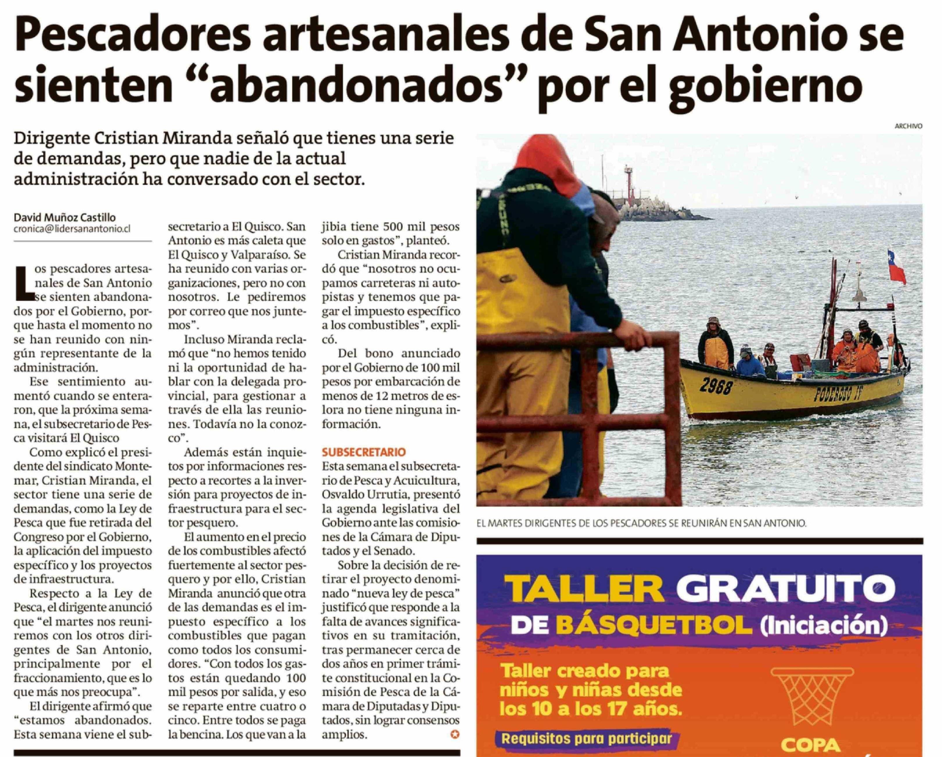 Título: Pescadores artesanales de San Antonio se sienten "abandonados" por el gobierno