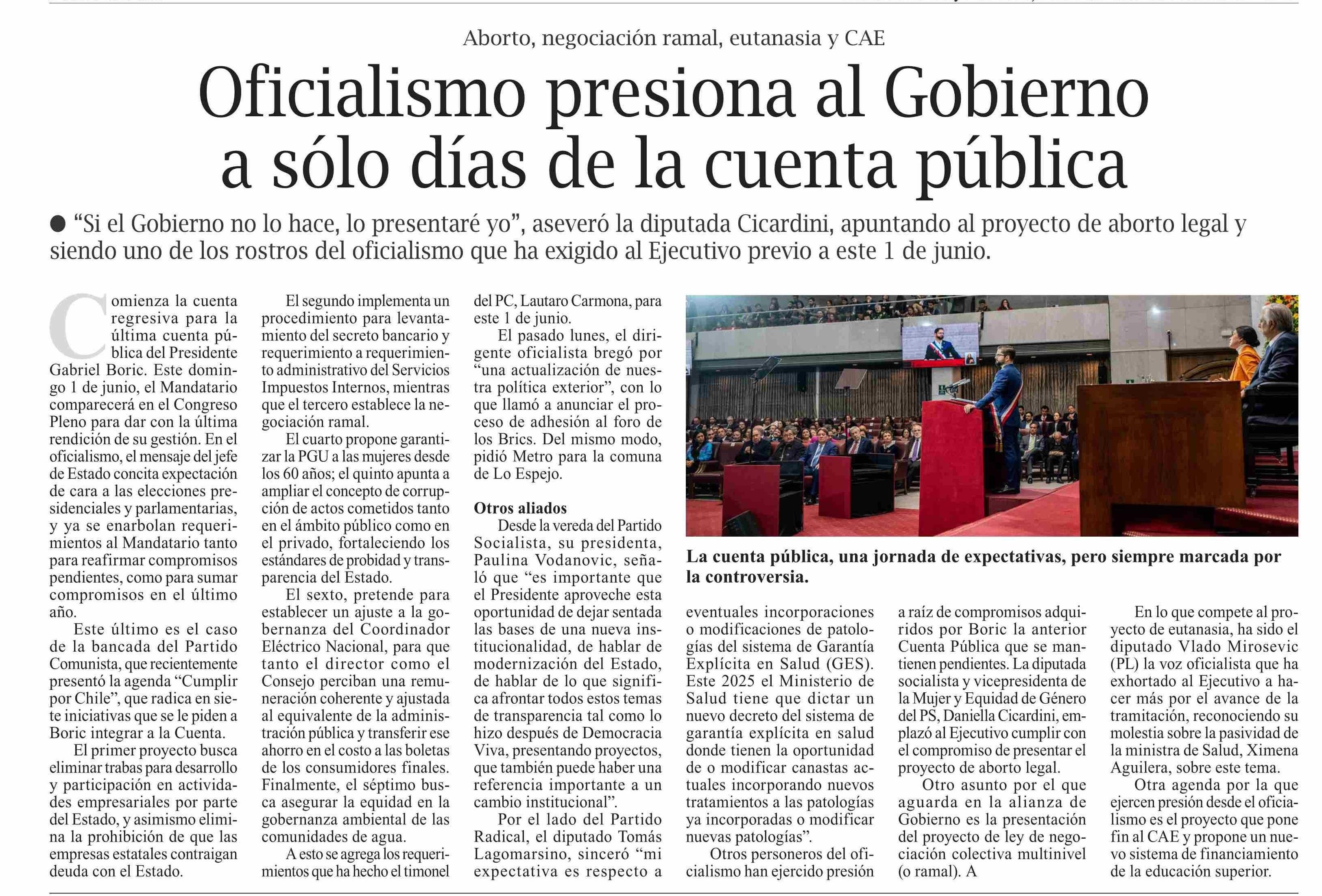 | Título: | Oficialismo presiona al Gobierno a sólo días de la cuenta pública |