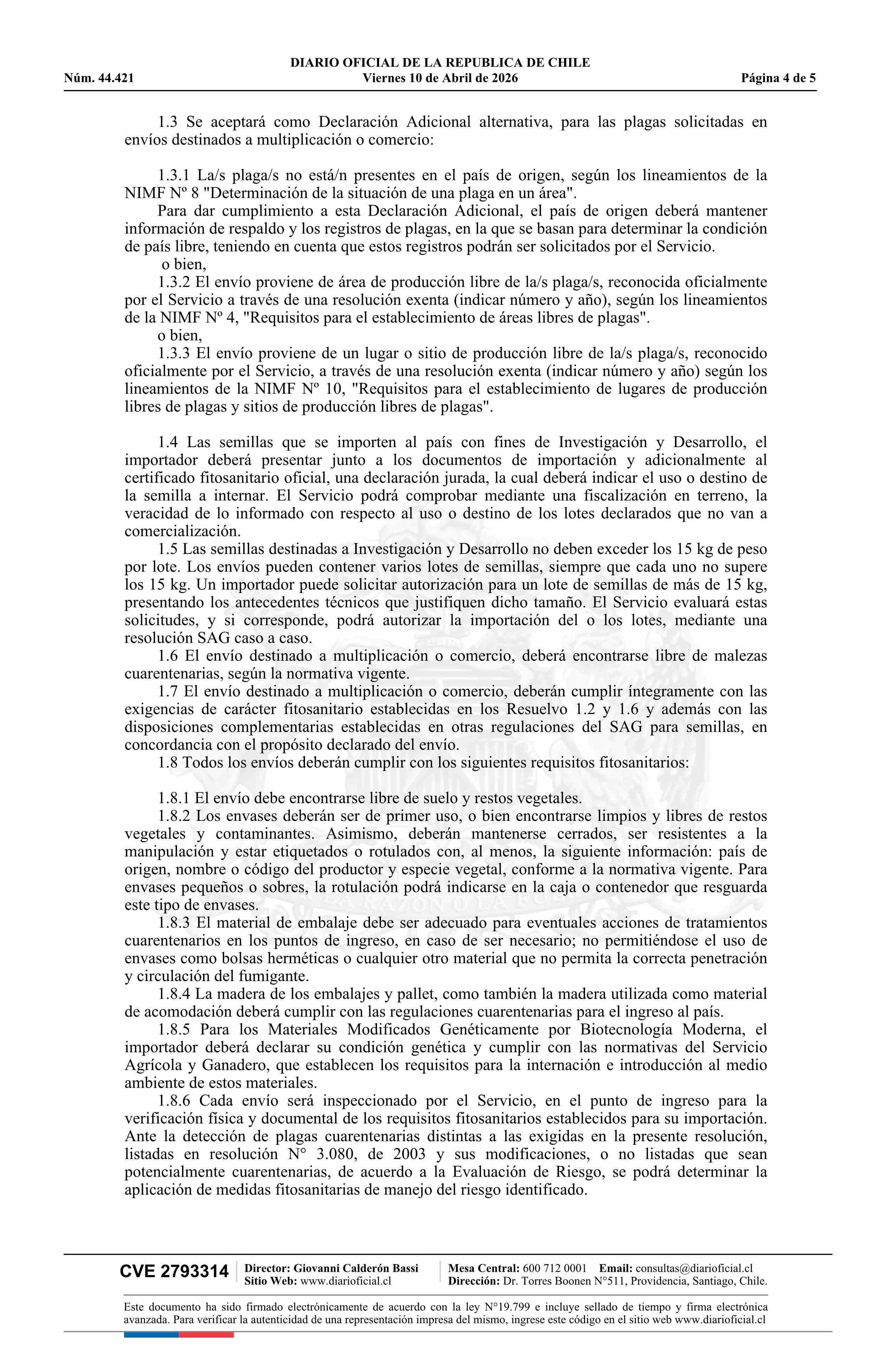 Título: Resolución exenta número 2.554, de 2026.- Establece requisitos fitosanitarios de importación para el ingreso de semillas de maíz (Zea mays L.) procedentes de todo origen y modifica resolución N° 1.187 exenta, de 2022