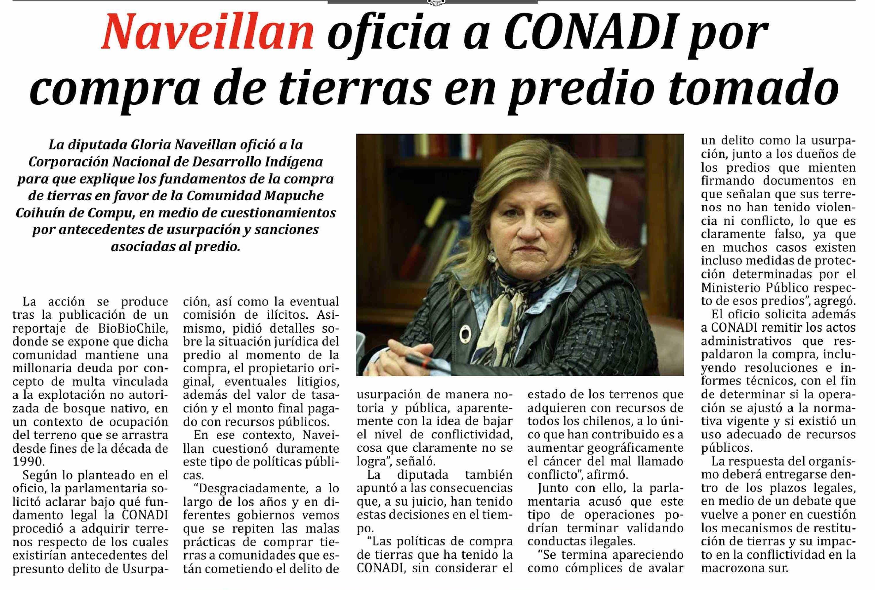 Título: Naveillan oficia a CONADI por compra de tierras en predio tomado