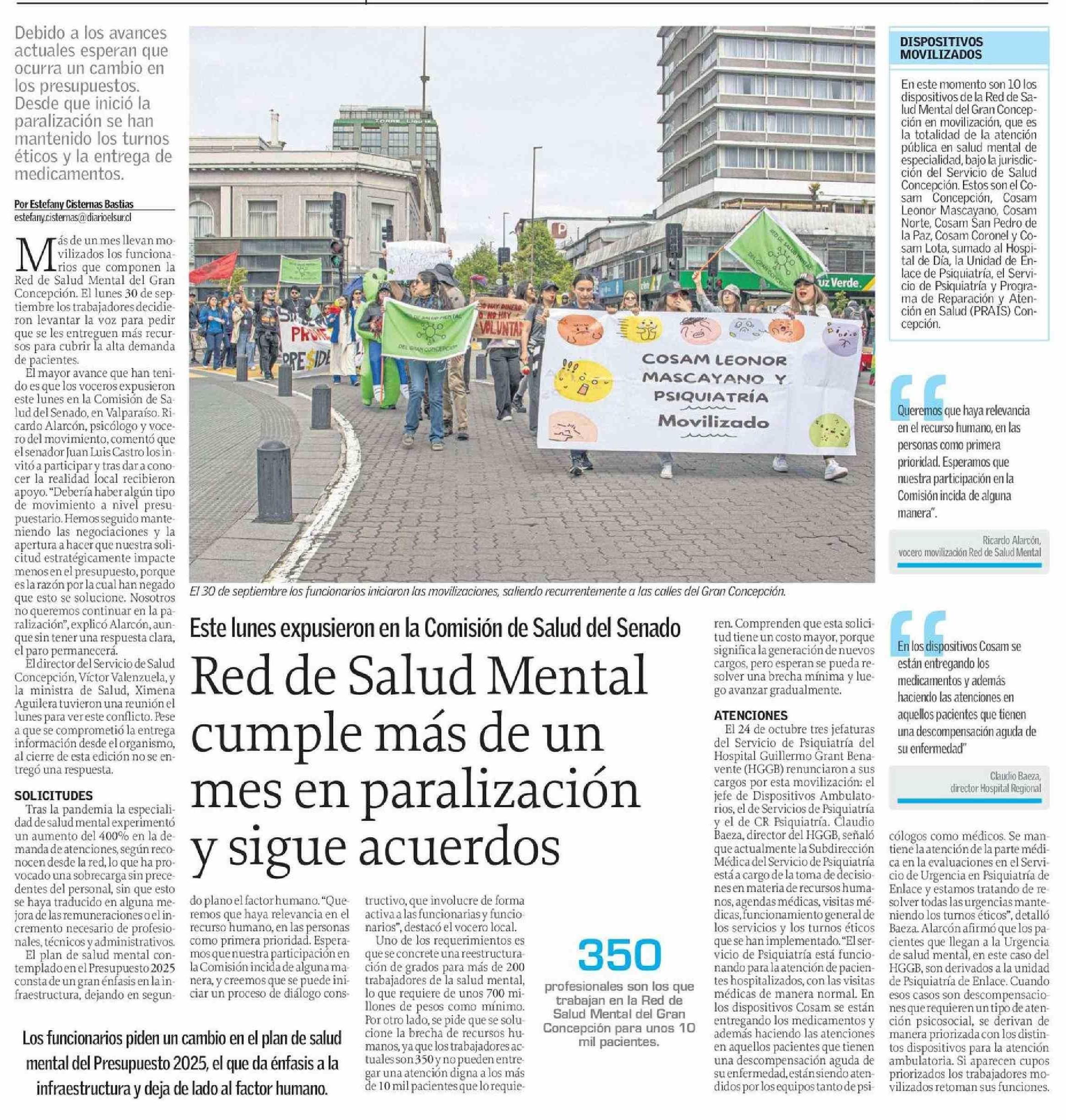 Red de Salud Mental cumple más de un mes en paralización y sigue acuerdos 06-11-2024 El Sur |