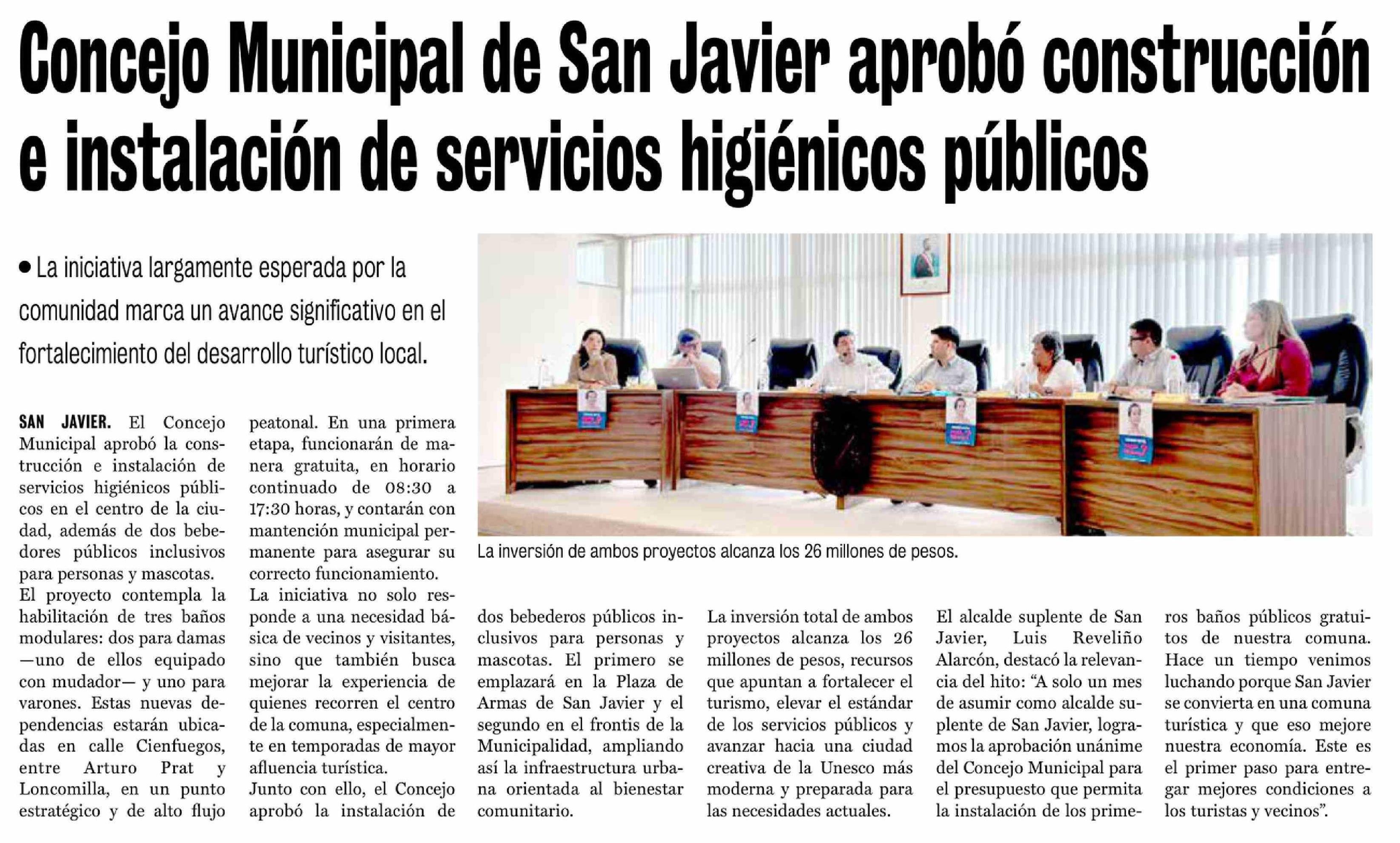 Título: Concejo Municipal de San Javier aprobó construcción e instalación de servicios higiénicos públicos