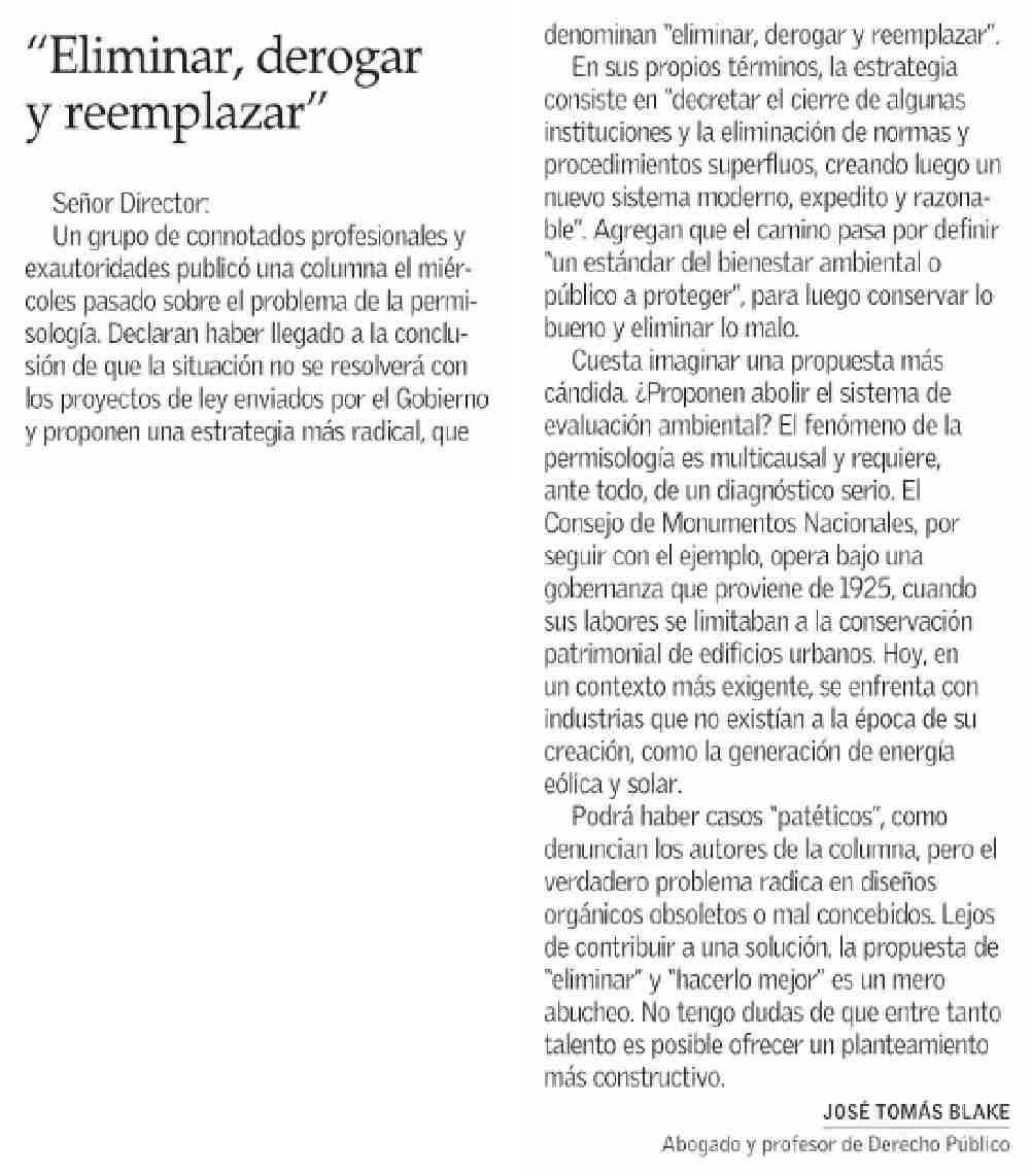 CARTAS: “Eliminar, derogar y reemplazar” 24-05-2025 El Mercurio |