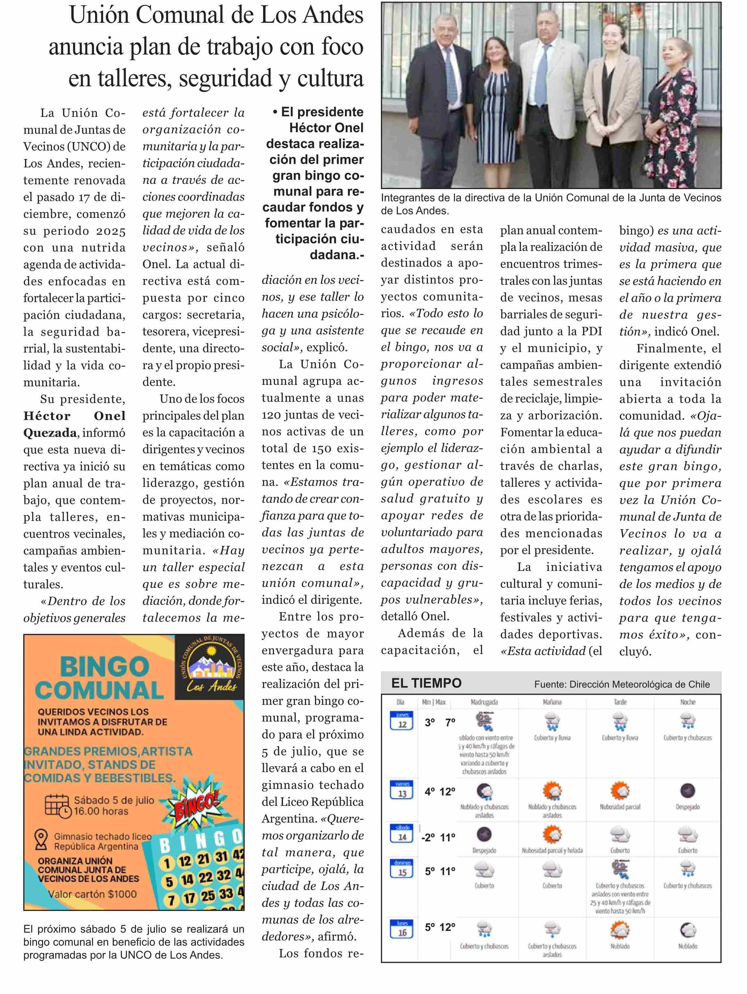 Unión Comunal de Los Andes anuncia plan de trabajo con foco en talleres, seguridad y cultura 12-06-2025 El Trabajo |