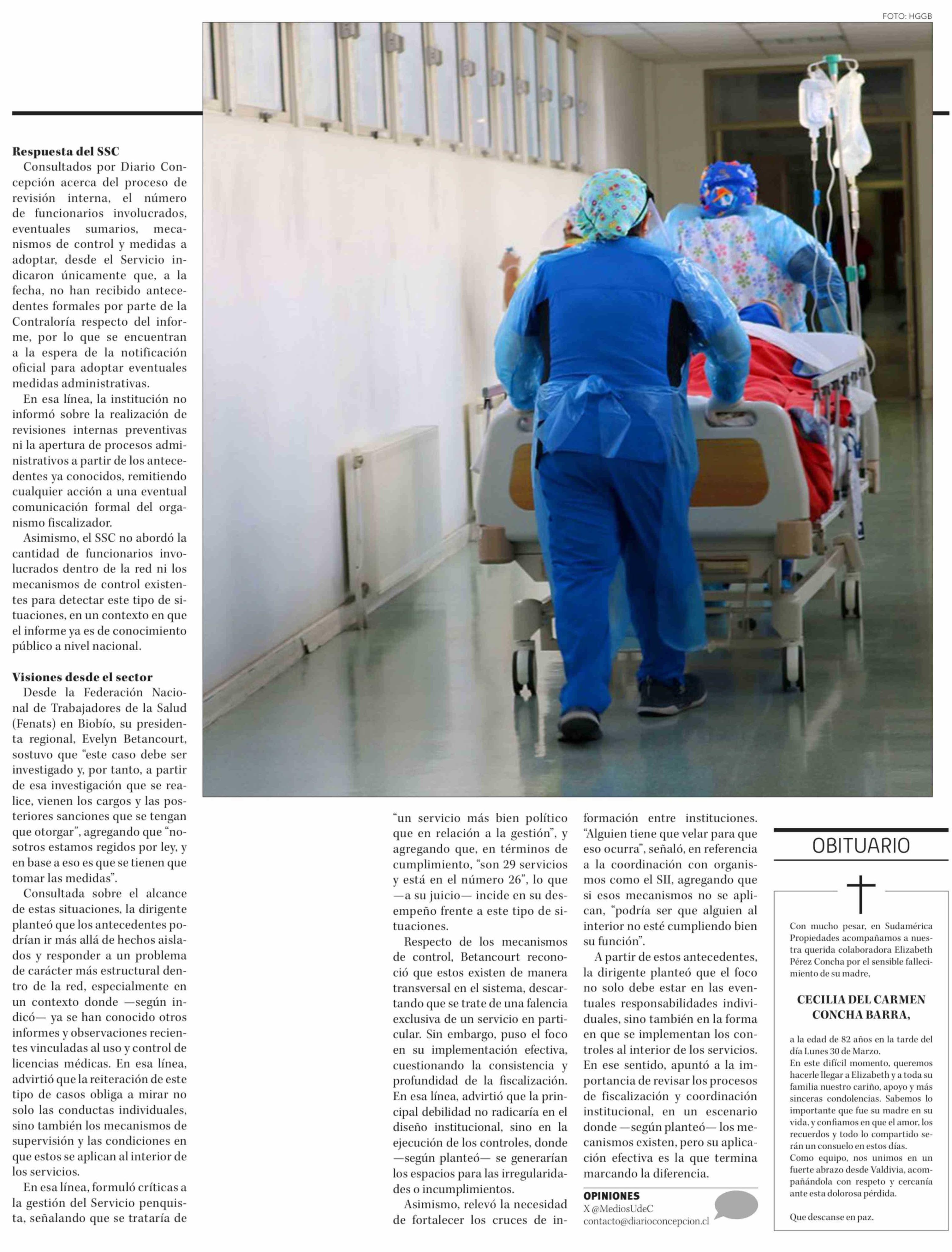 Contraloría: 114 funcionarios del Servicio de Salud Concepción trabajaron para terceros bajo licencia médica 02-04-2026 Diario Concepción |
